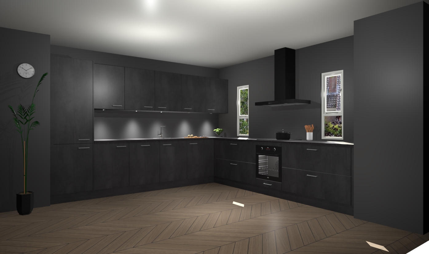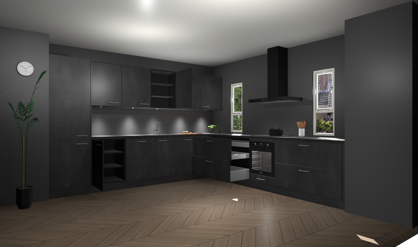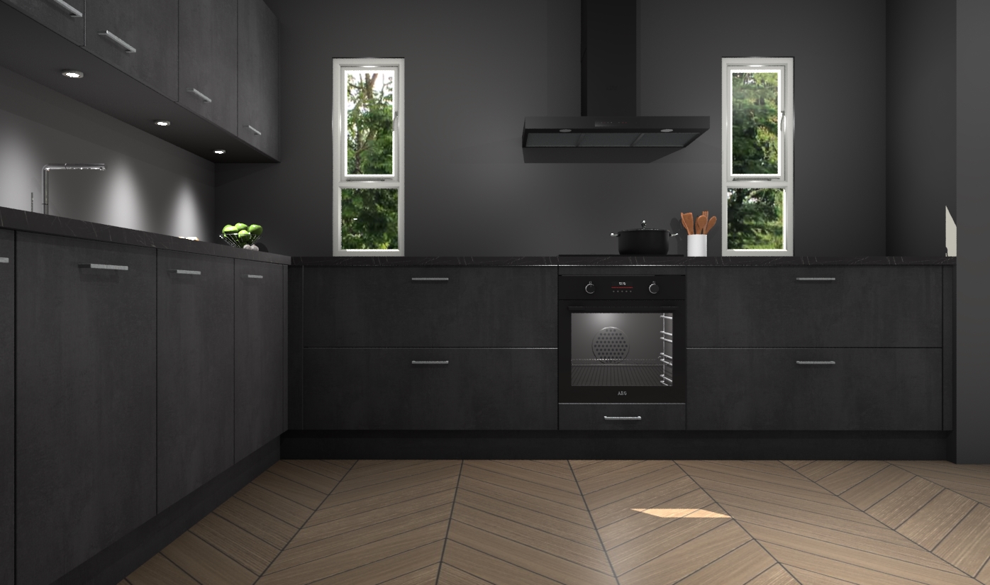 De beton zwarte keuken is een ideale hoekkeuken en heeft alle functies en apparatuur die u maar nodig kunt hebben. Bij de bestelling krijgt u een oven, inductiekookplaat, afzuigkap, vaatwasser en koelkast - deze kunnen desgewenst eenvoudig worden uitgebreid naar AEG na bestellen. Elke kast wordt ook voor gemonteerd geleverd met soft close deuren die jarenlang gebruik beloven. Stelt u zich voor dat u geen gedoe heeft met vervelende montage - vanaf het moment dat u uw bestelling plaats, duurt het slechts 7 weken voor het bij u thuis geleverd wordt.