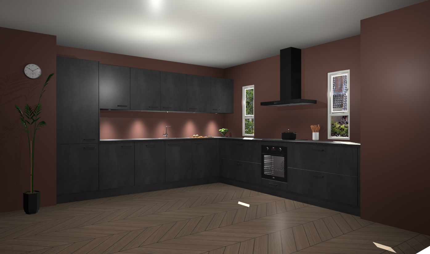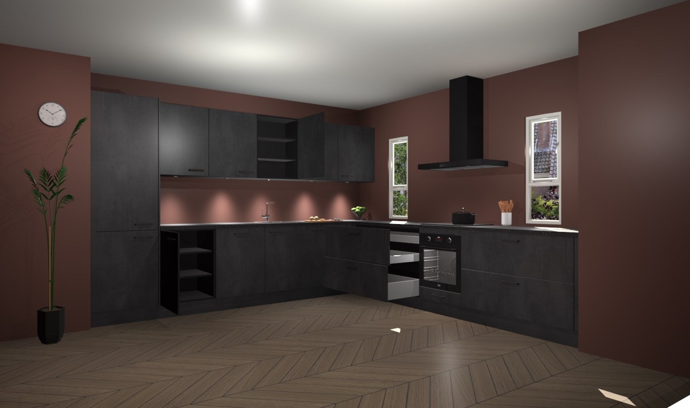 De beton zwarte keuken is een ideale hoekkeuken en heeft alle functies en apparatuur die u maar nodig kunt hebben. Bij de bestelling krijgt u een oven, inductiekookplaat, afzuigkap, vaatwasser en koelkast - deze kunnen desgewenst eenvoudig worden uitgebreid naar AEG na bestellen. Elke kast wordt ook voor gemonteerd geleverd met soft close deuren die jarenlang gebruik beloven. Stelt u zich voor dat u geen gedoe heeft met vervelende montage - vanaf het moment dat u uw bestelling plaats, duurt het slechts 7 weken voor het bij u thuis geleverd wordt.