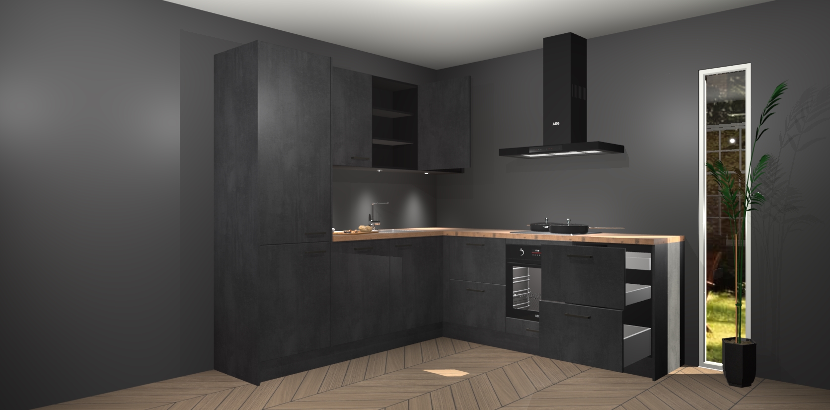 Inclusief plinten, stelpoten en werkblad