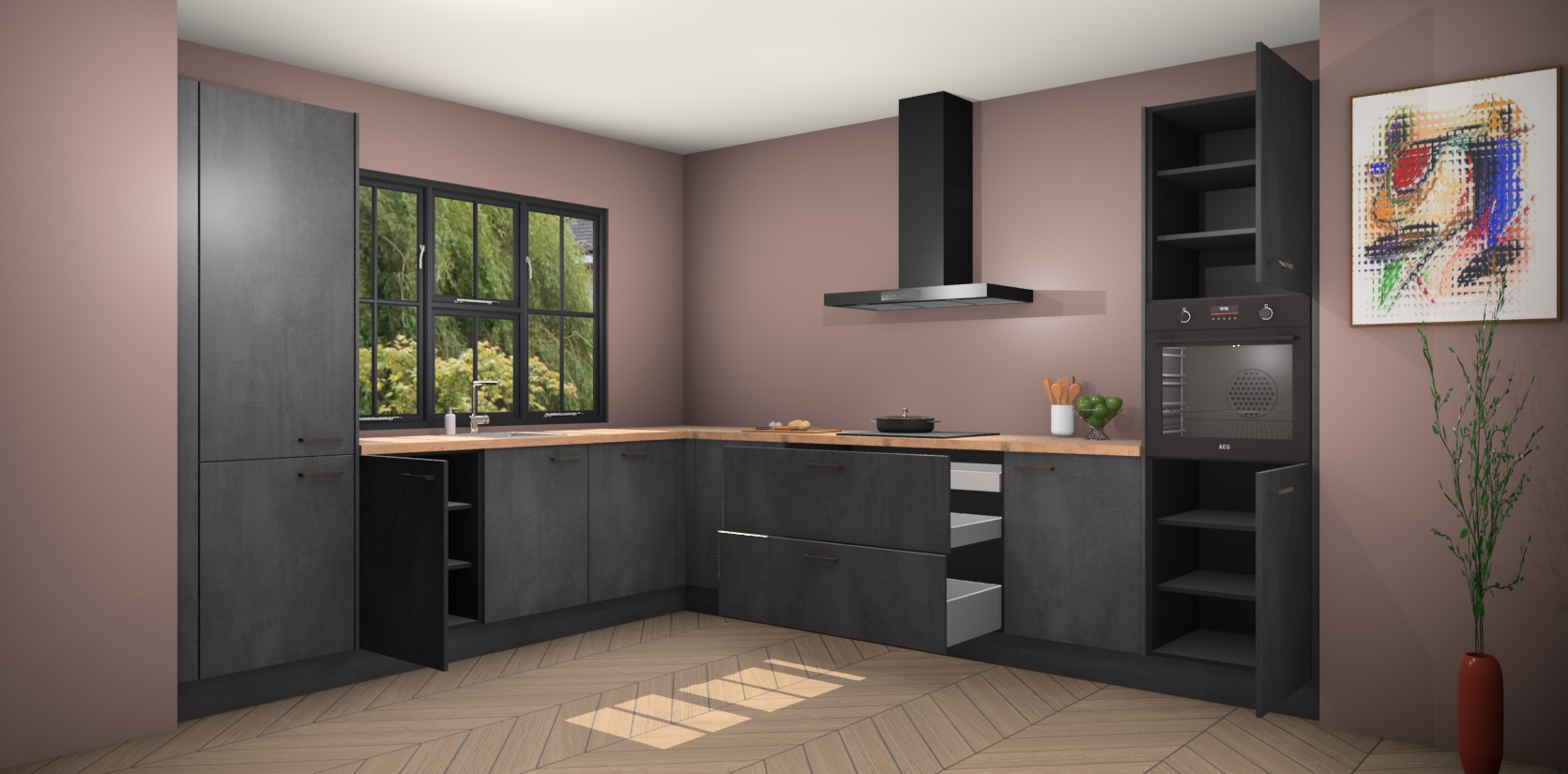 Inclusief plinten, stelpoten en werkblad