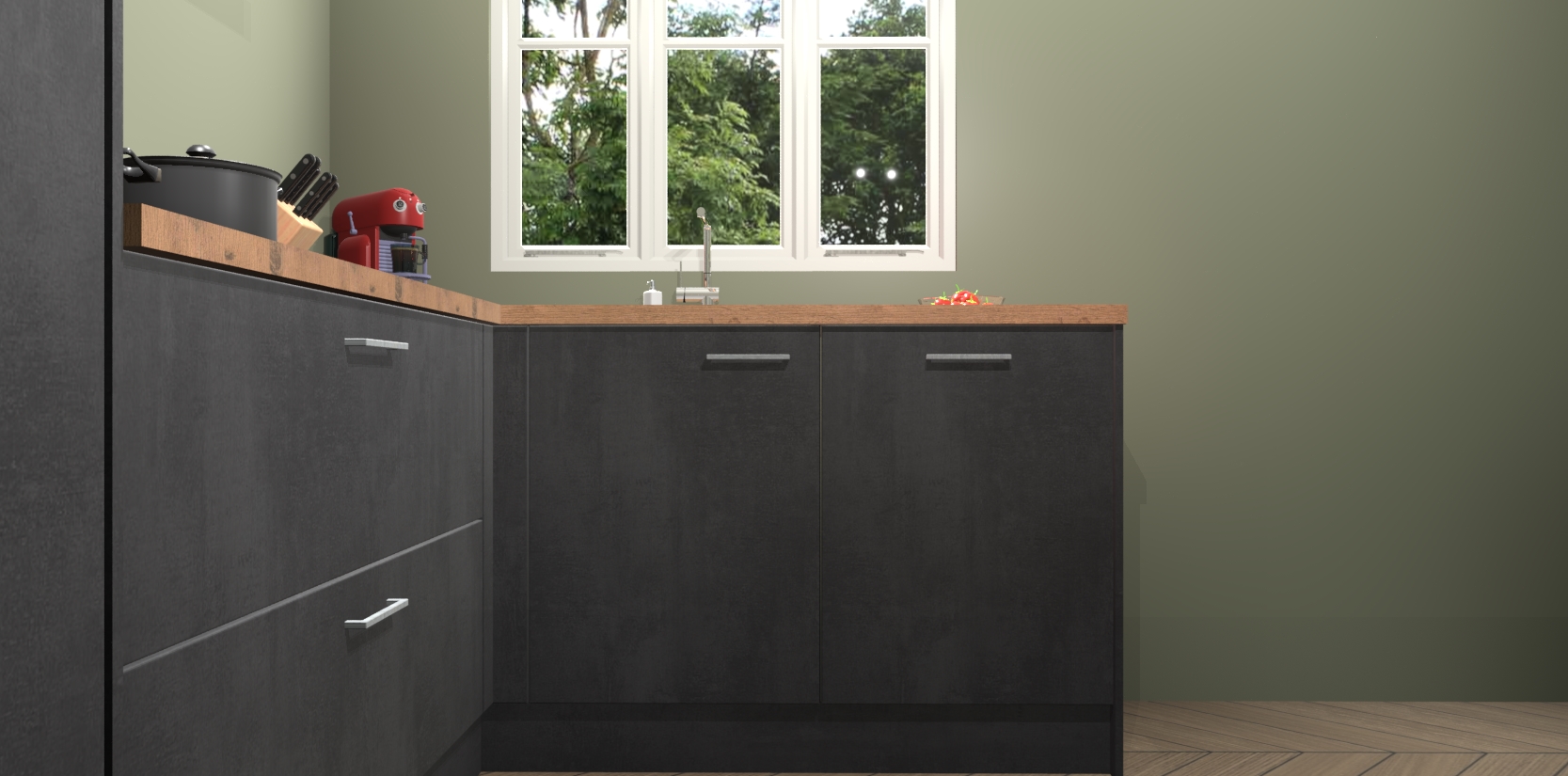Als u op zoek bent naar een keuken die moderne stijl en elegantie combineert, is de Beton Zwarte keuken Victoria precies wat u zoekt! De perfecte combinatie van modern design en tijdloos kwaliteitsmateriaal zorgen voor een unieke keuken waar u met trots mee kunt pronken.