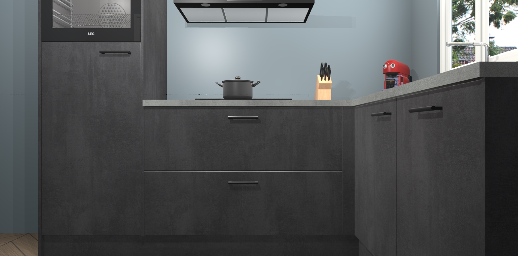 Bestellen was nog nooit zo makkelijk en we leveren met slechts 7 weken; zodra de keuken arriveert staan de kasten voor gemonteerd klaar om er alles aan te doen dat u hem gemakkelijk zelf kunt installeren! Eén ding is zeker: met de Beton Zwarte keuken Victoria slaagt u erin modischer, modernere keukens uit te rusten die tientallen jaren meegaan! Haal snel uw Beton Zwarte keuken Victoria - of u nu net begint of al 'levenservaring' hebt in de keukendroomloopbaan - want dit topmodel van onze collectie wilt u absoluut niet missen.