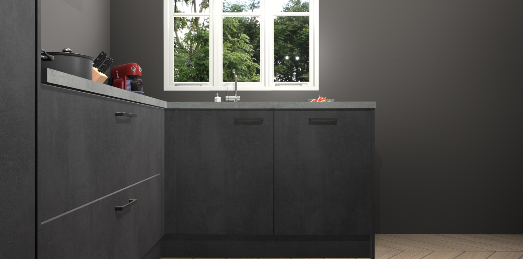 Als u op zoek bent naar een keuken die moderne stijl en elegantie combineert, is de Beton Zwarte keuken Victoria precies wat u zoekt! De perfecte combinatie van modern design en tijdloos kwaliteitsmateriaal zorgen voor een unieke keuken waar u met trots mee kunt pronken.