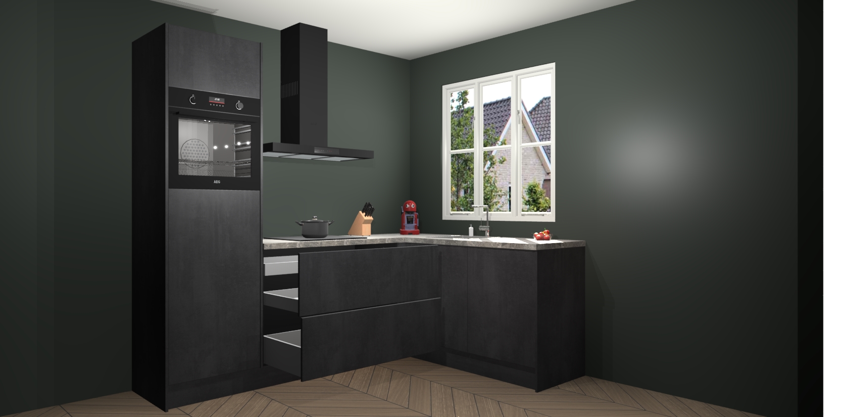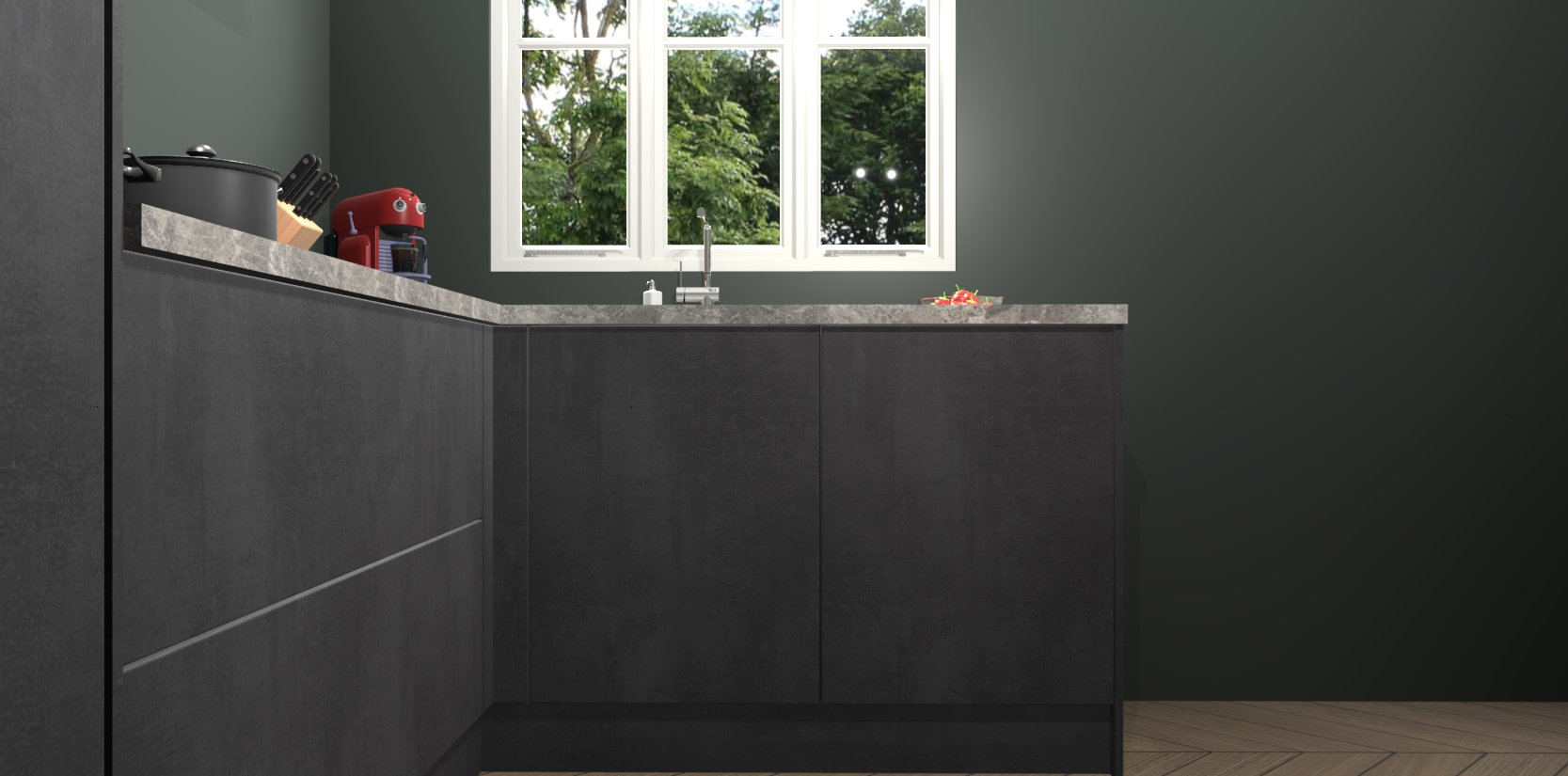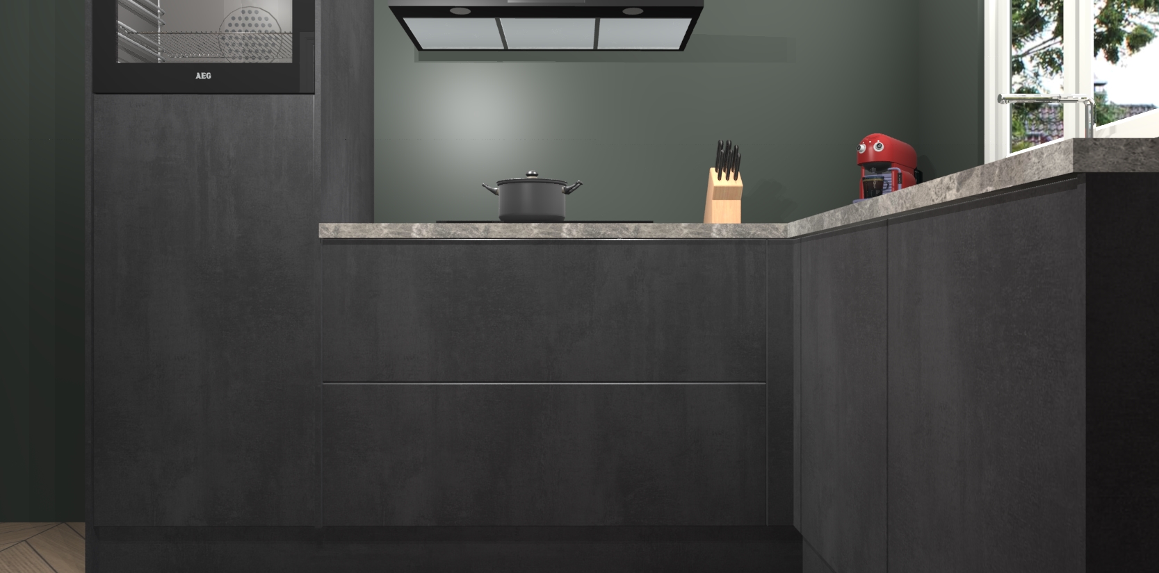 Als u op zoek bent naar een keuken die moderne stijl en elegantie combineert, is de Beton Zwarte keuken Victoria precies wat u zoekt! De perfecte combinatie van modern design en tijdloos kwaliteitsmateriaal zorgen voor een unieke keuken waar u met trots mee kunt pronken.