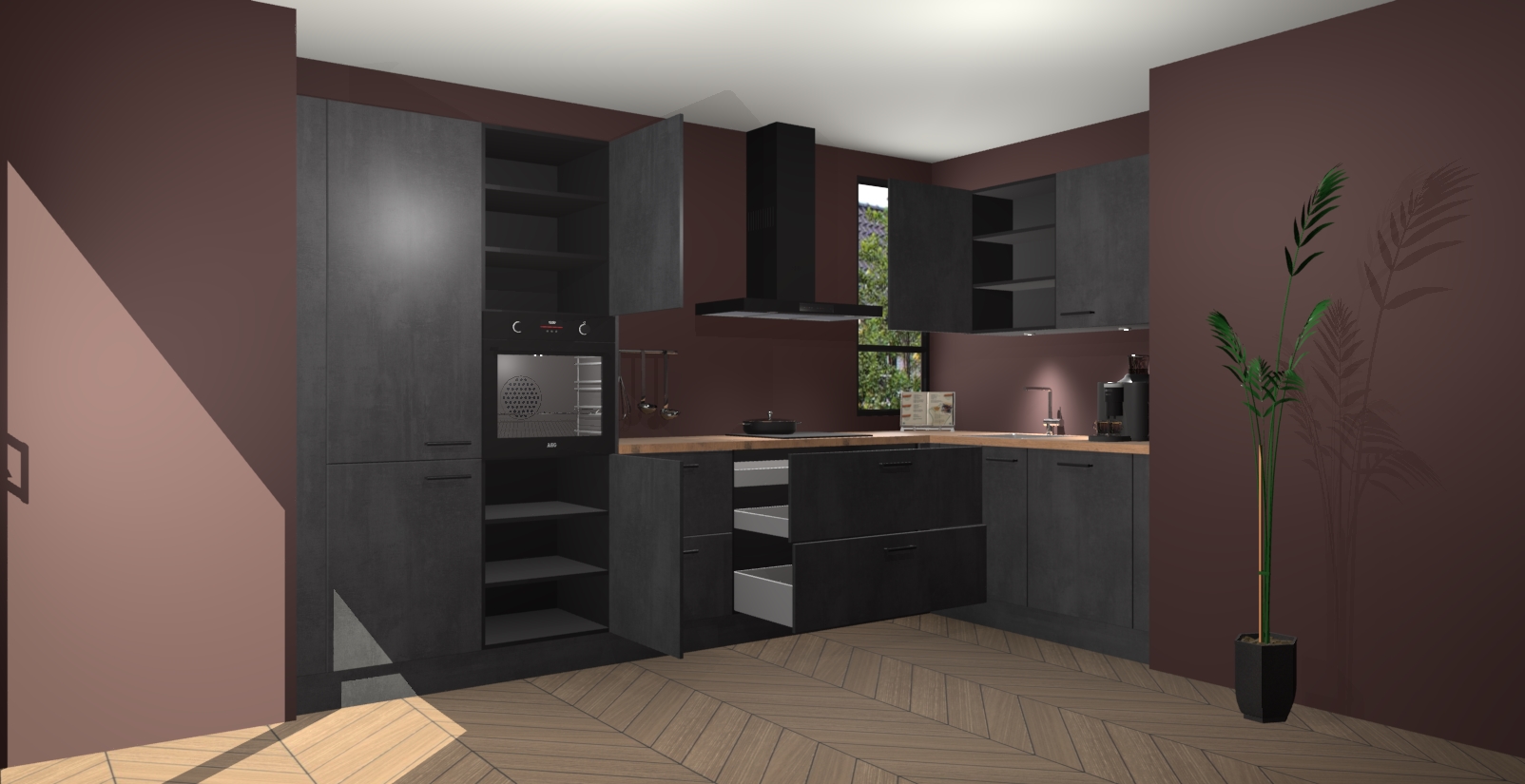 Welkom in uw nieuwe moderne keuken! Laat ons u voorstellen aan de Beton Zwarte keuken Vlaanderen . Deze prachtige hoekkeuken straalt exclusiviteit en luxe uit als geen ander. Het strakke design, de tijdloze kleuren en het model maken van deze keuken een moderne klassieker. En met voldoende opbergruimte heeft deze keuken echt voor ieder wat wils.