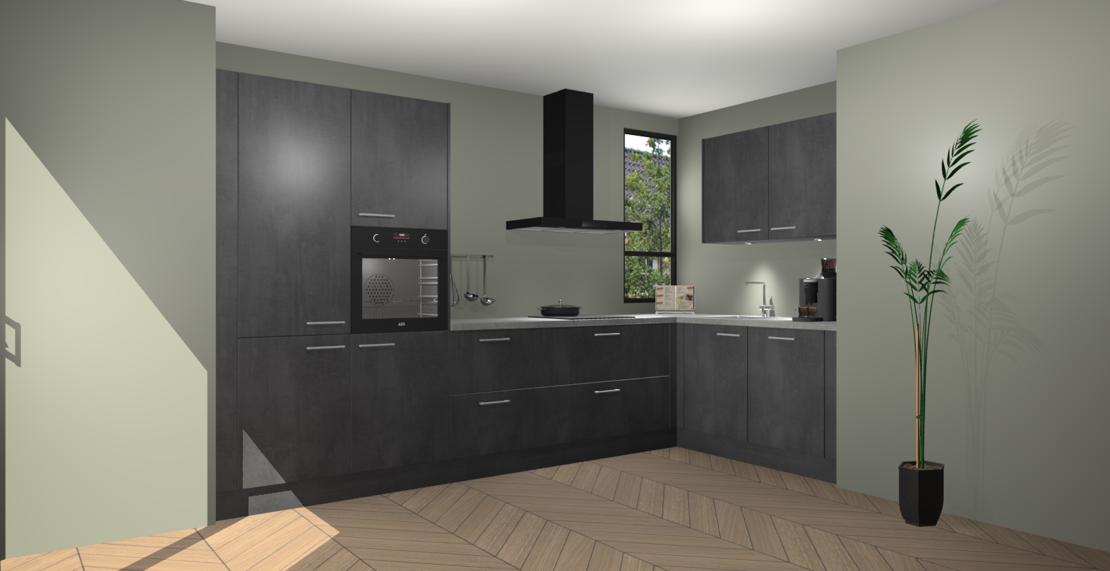 Welkom in uw nieuwe moderne keuken! Laat ons u voorstellen aan de Beton Zwarte keuken Vlaanderen . Deze prachtige hoekkeuken straalt exclusiviteit en luxe uit als geen ander. Het strakke design, de tijdloze kleuren en het model maken van deze keuken een moderne klassieker. En met voldoende opbergruimte heeft deze keuken echt voor ieder wat wils.