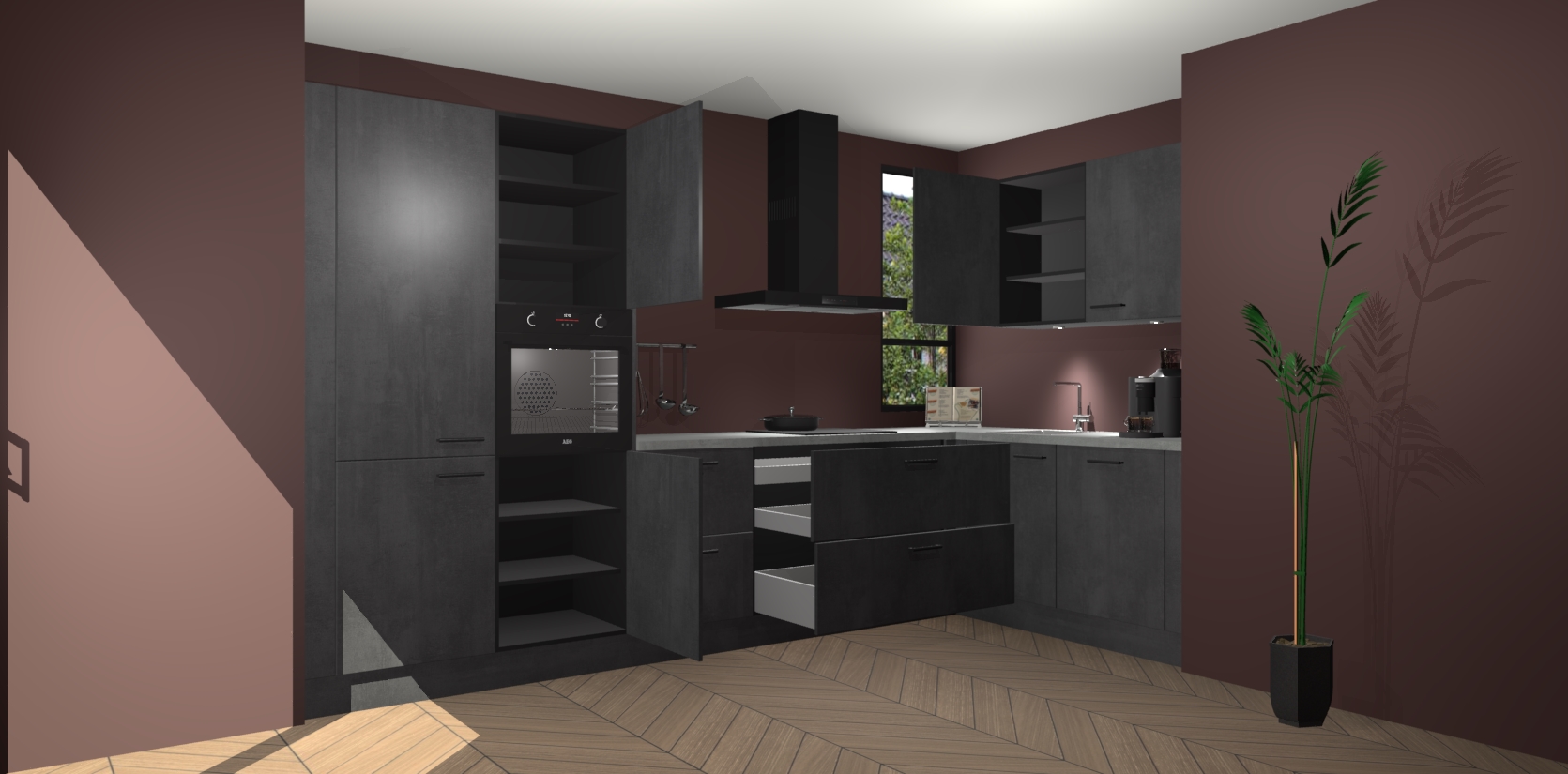 Welkom in uw nieuwe moderne keuken! Laat ons u voorstellen aan de Beton Zwarte keuken Vlaanderen . Deze prachtige hoekkeuken straalt exclusiviteit en luxe uit als geen ander. Het strakke design, de tijdloze kleuren en het model maken van deze keuken een moderne klassieker. En met voldoende opbergruimte heeft deze keuken echt voor ieder wat wils.