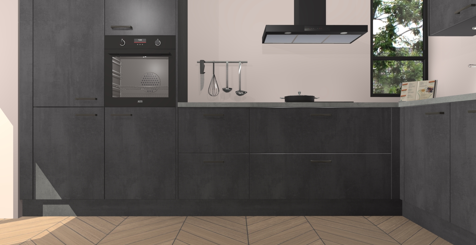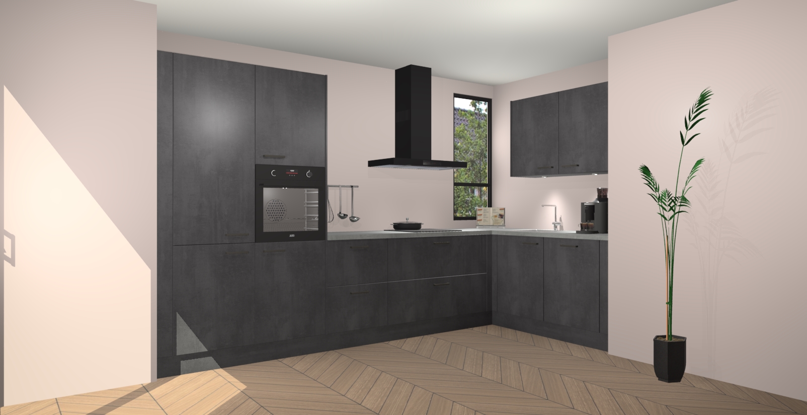 Welkom in uw nieuwe moderne keuken! Laat ons u voorstellen aan de Beton Zwarte keuken Vlaanderen . Deze prachtige hoekkeuken straalt exclusiviteit en luxe uit als geen ander. Het strakke design, de tijdloze kleuren en het model maken van deze keuken een moderne klassieker. En met voldoende opbergruimte heeft deze keuken echt voor ieder wat wils.
