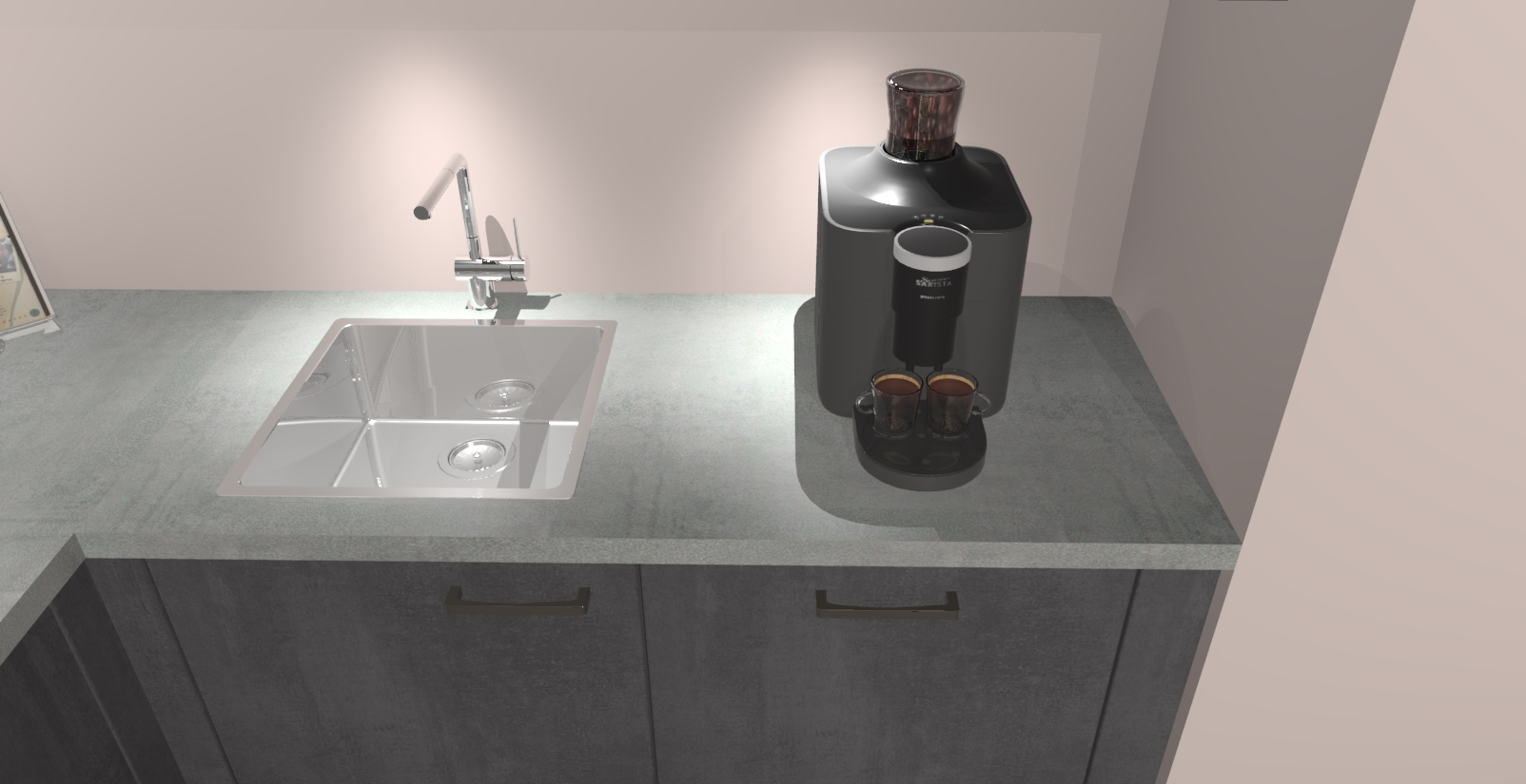 - De spoelbak is nog niet in gevreesd. Dit dient tijdens het werk gedaan te worden