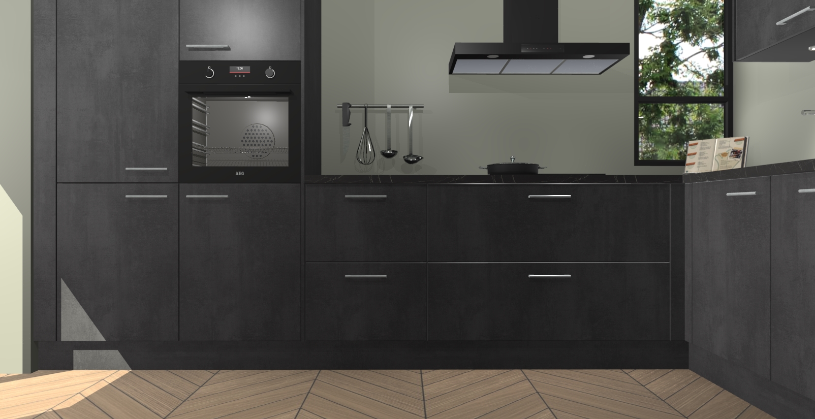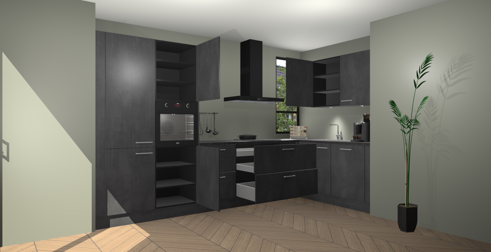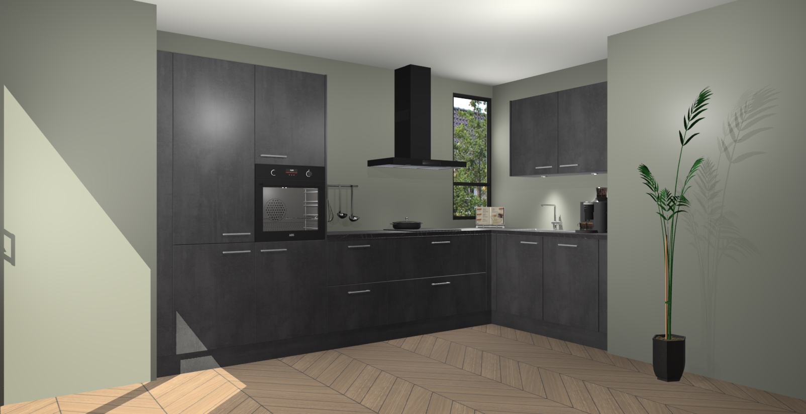 Welkom in uw nieuwe moderne keuken! Laat ons u voorstellen aan de Beton Zwarte keuken Vlaanderen . Deze prachtige hoekkeuken straalt exclusiviteit en luxe uit als geen ander. Het strakke design, de tijdloze kleuren en het model maken van deze keuken een moderne klassieker. En met voldoende opbergruimte heeft deze keuken echt voor ieder wat wils.