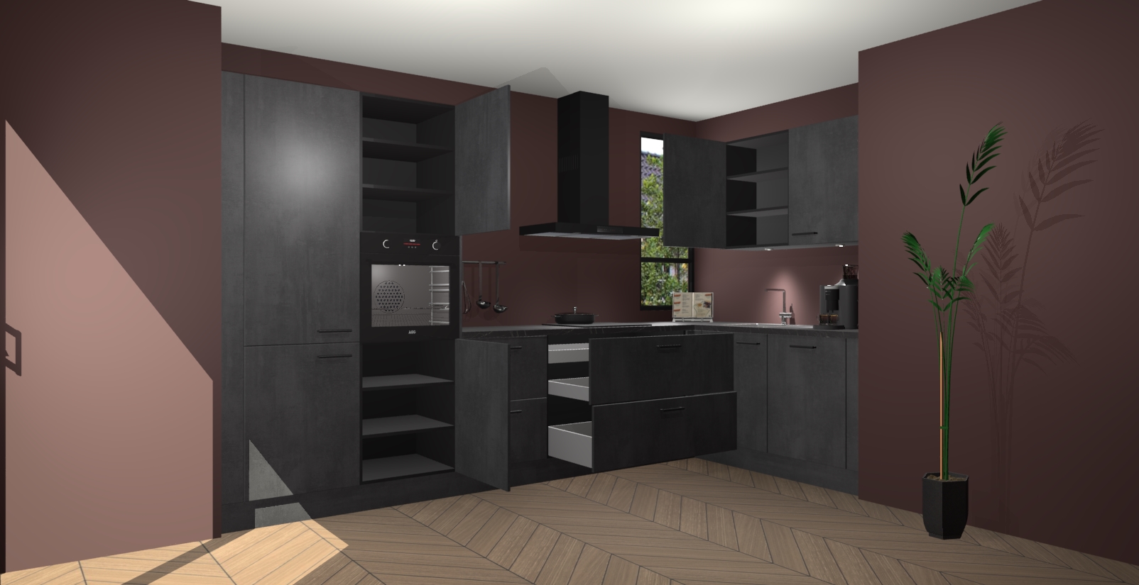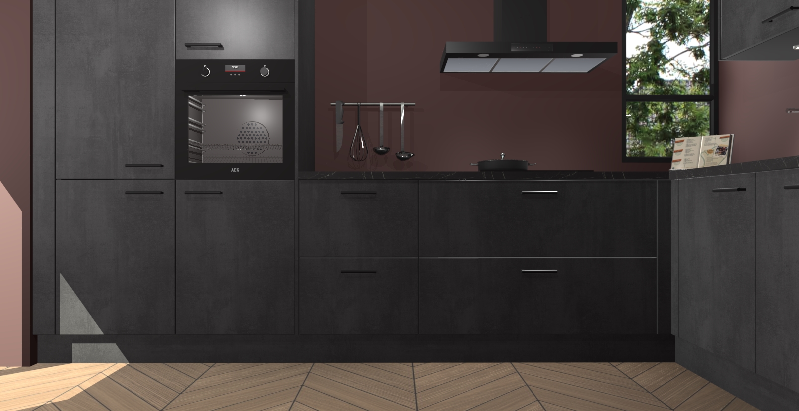 Welkom in uw nieuwe moderne keuken! Laat ons u voorstellen aan de Beton Zwarte keuken Vlaanderen . Deze prachtige hoekkeuken straalt exclusiviteit en luxe uit als geen ander. Het strakke design, de tijdloze kleuren en het model maken van deze keuken een moderne klassieker. En met voldoende opbergruimte heeft deze keuken echt voor ieder wat wils.