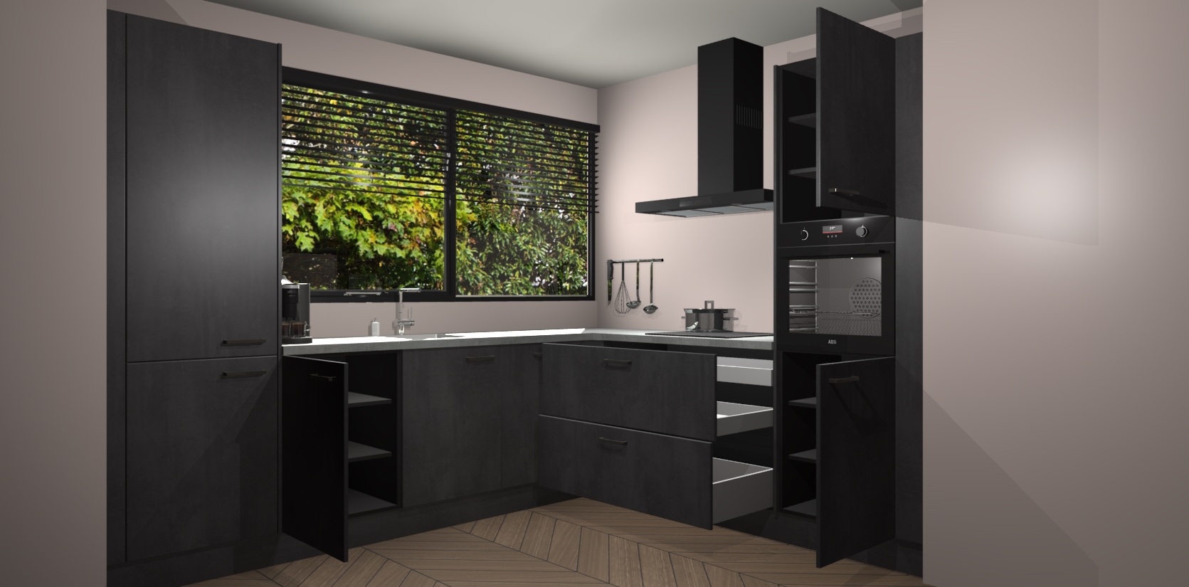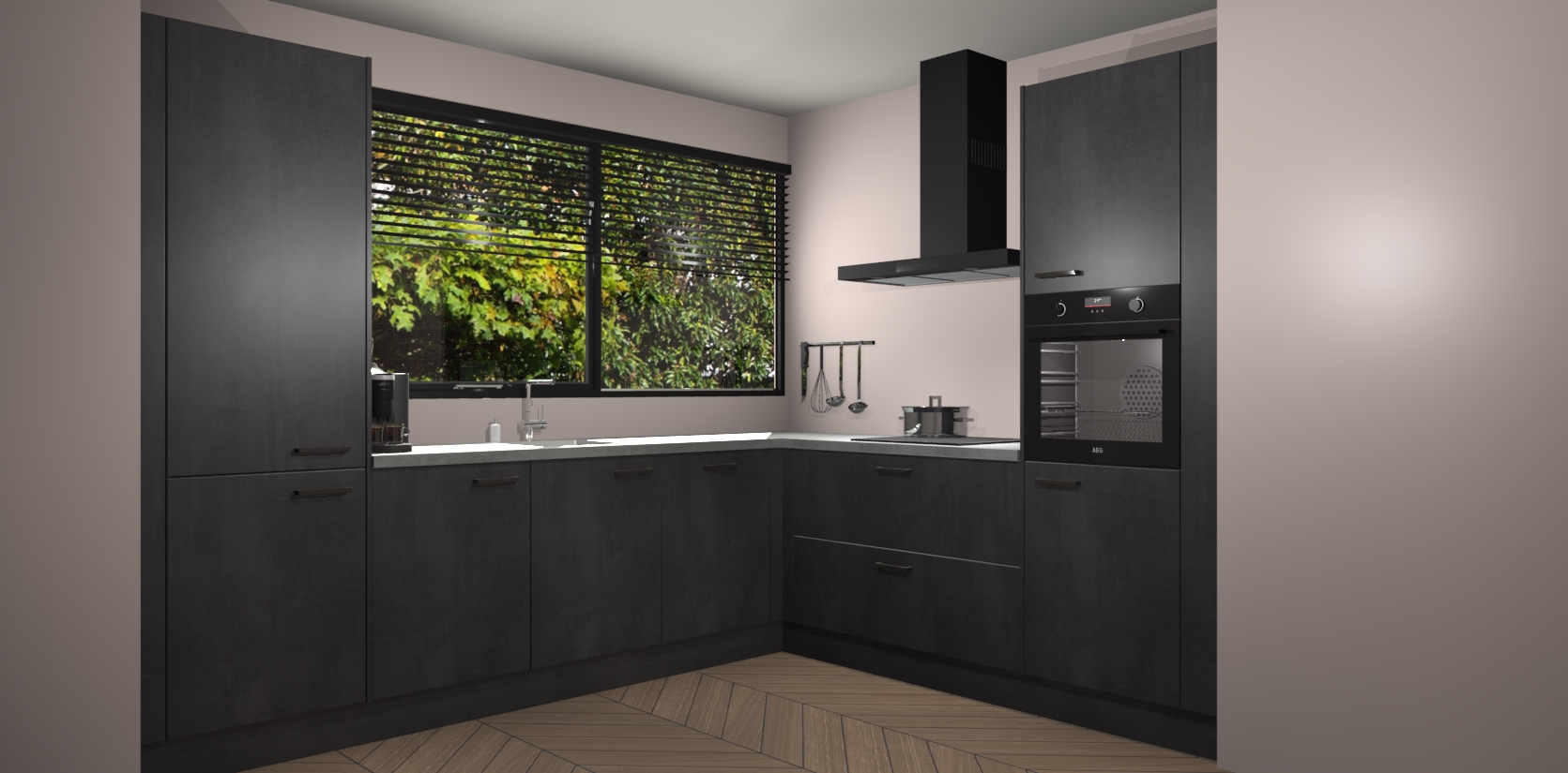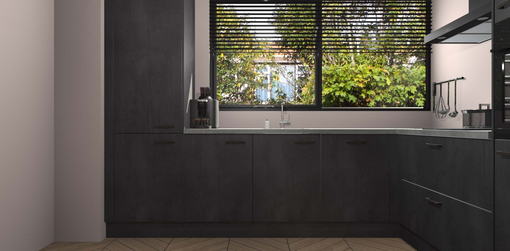 Wij presenteren de revolutie in keukens: de beton zwarte keuken Vogar. Met modern design, een tijdloos uiterlijk en kasten die al voor gemonteerd worden geleverd, laat deze stijlvolle keuken uw kookervaring op een hele nieuwe manier transformeren.