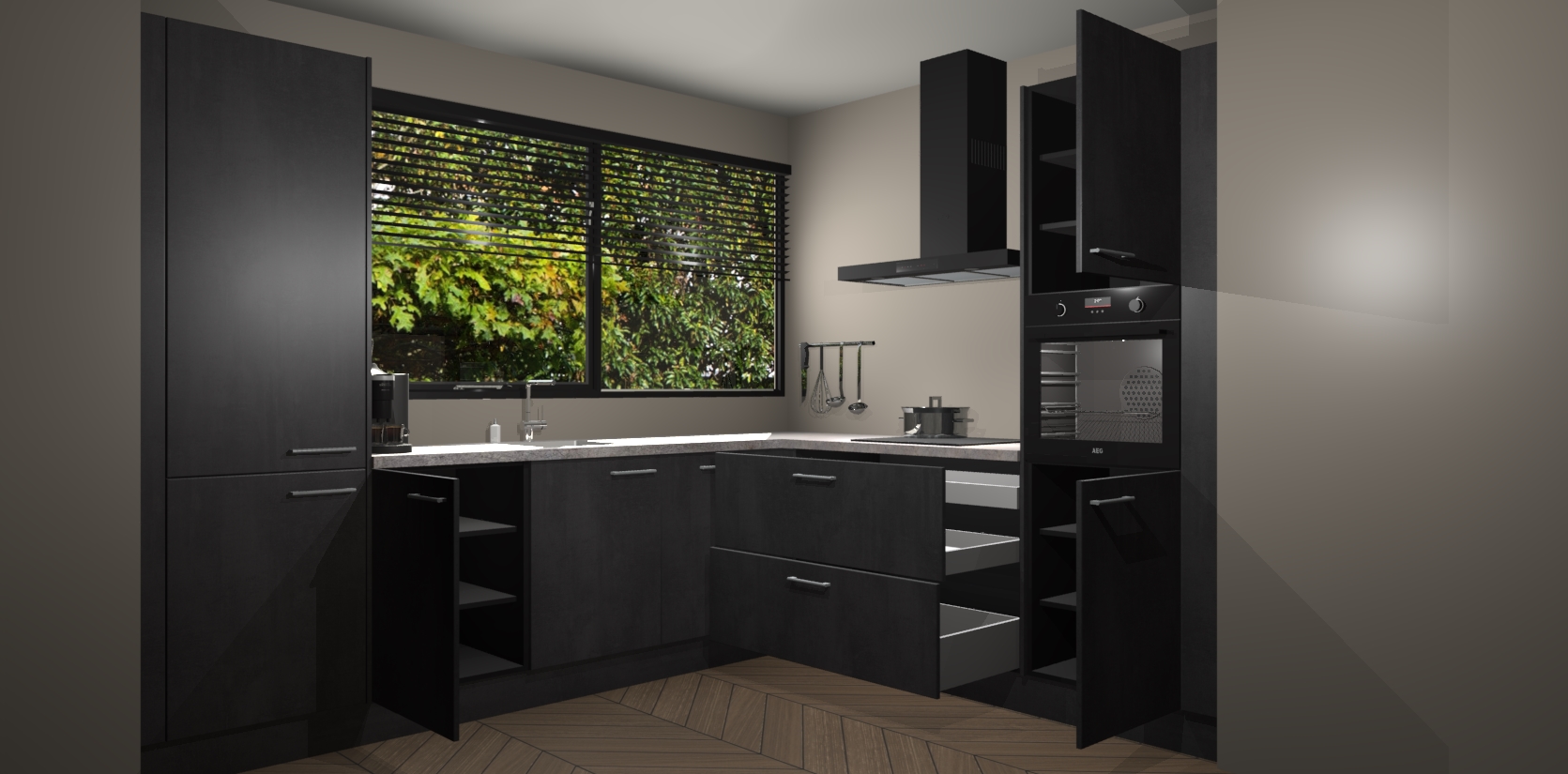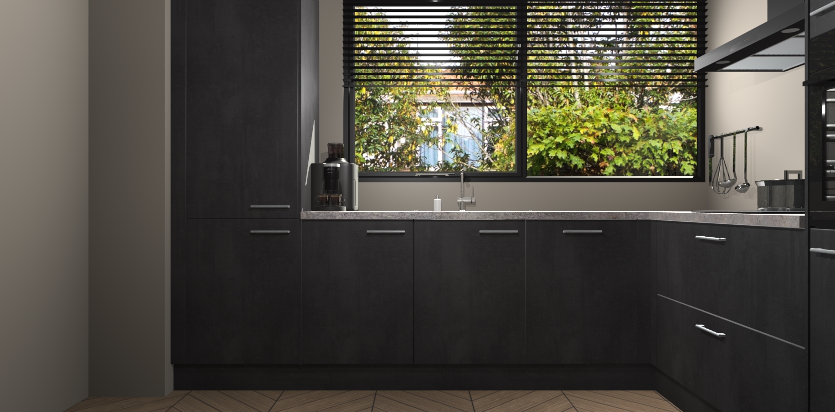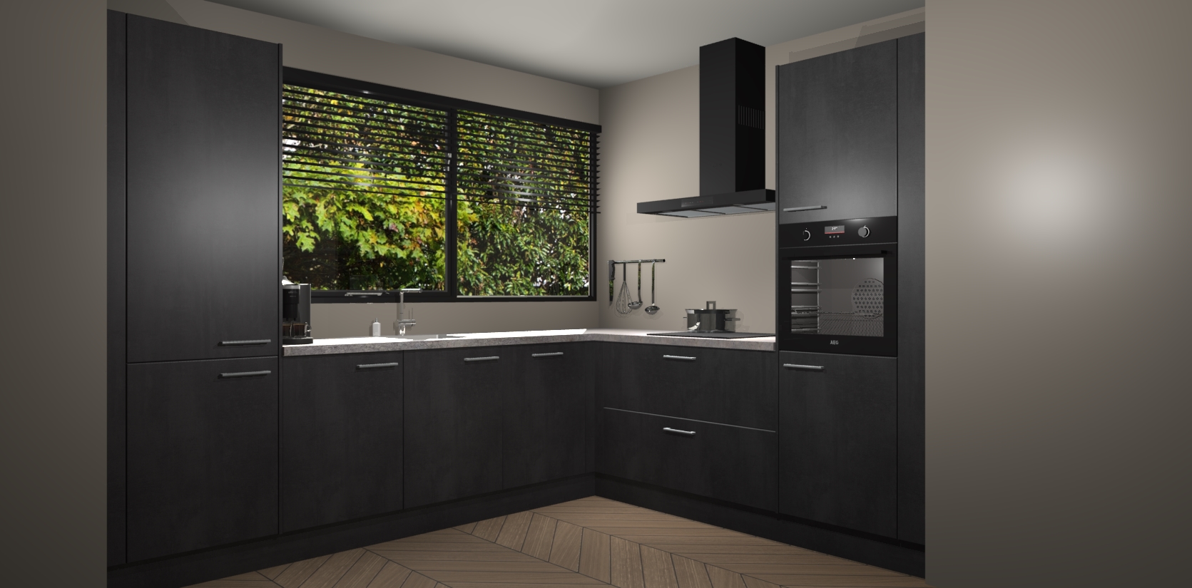 Wij presenteren de revolutie in keukens: de beton zwarte keuken Vogar. Met modern design, een tijdloos uiterlijk en kasten die al voor gemonteerd worden geleverd, laat deze stijlvolle keuken uw kookervaring op een hele nieuwe manier transformeren.