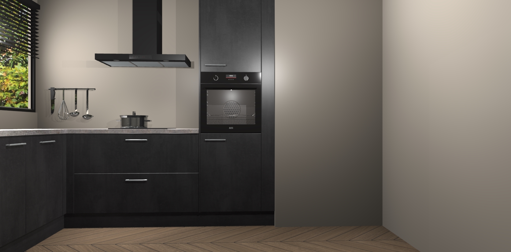 Met een modern, tijdloos design en ruime opslagruimte, zult u zich in no-time thuis voelen in uw nieuwe keuken. Uw leven wordt eenvoudiger met de soft-close deuren die voor het ultieme stille comfort zorgen - geen geluid dat u stoort terwijl u kookt. Ook is de keuken voorzien van 5 ingebouwde apparaten: een oven, inductie kookplaat, afzuigkap, vaatwasser en koelkast. Deze kunnen gemakkelijk na bestelling worden bijgewerkt naar AEG - waardoor uw luxe ervaring compleet is.