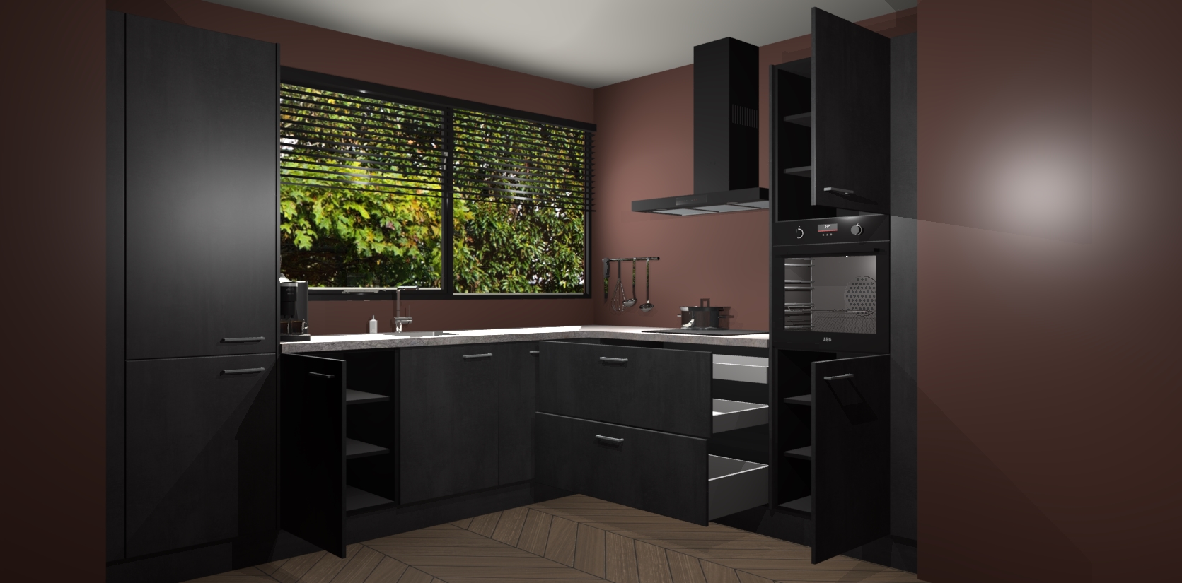 Wij presenteren de revolutie in keukens: de beton zwarte keuken Vogar. Met modern design, een tijdloos uiterlijk en kasten die al voor gemonteerd worden geleverd, laat deze stijlvolle keuken uw kookervaring op een hele nieuwe manier transformeren.
