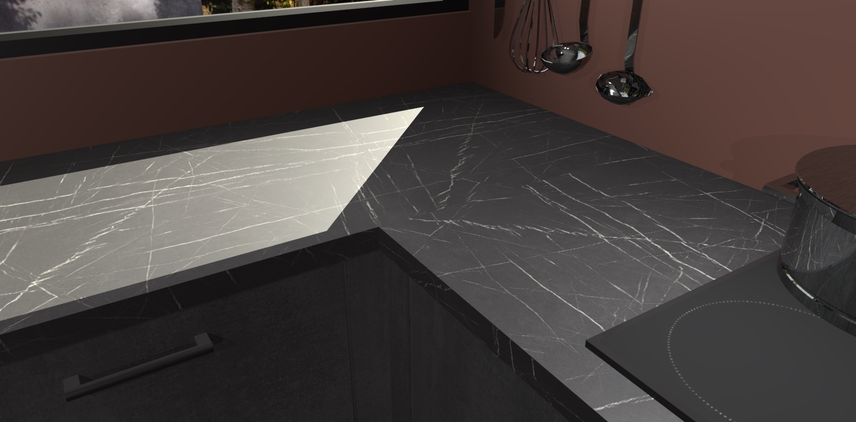 - Bij een hoekwerkblad zijn de hoeken in gevreesd en op maat gemaakt