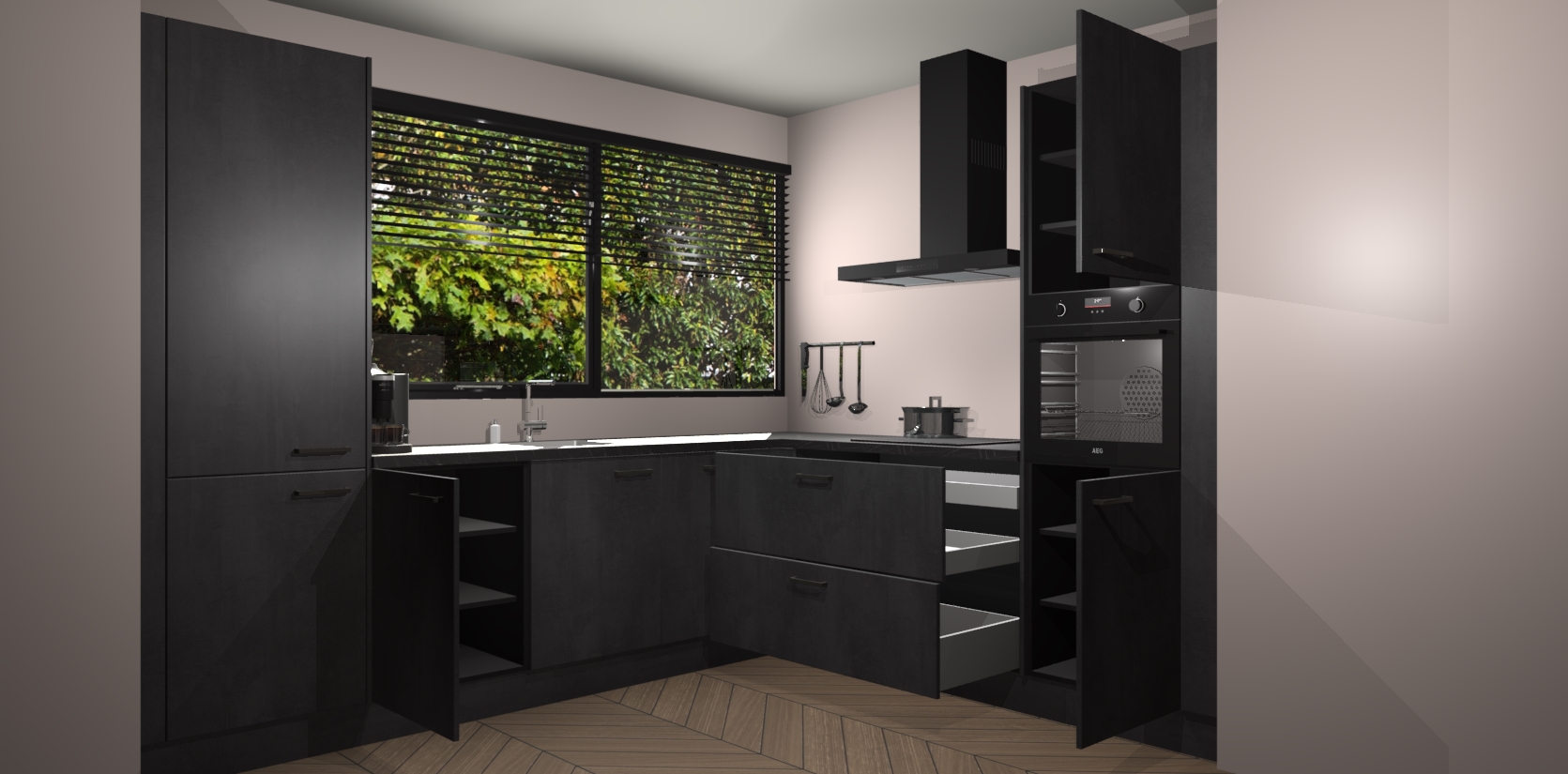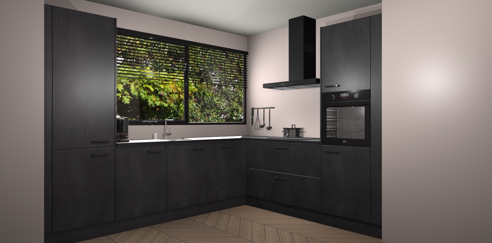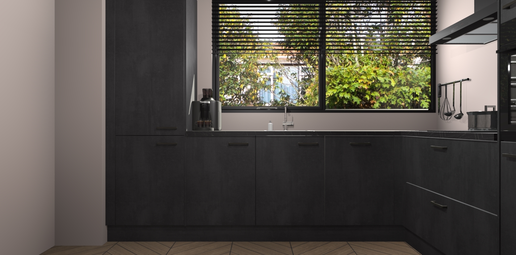 Wij presenteren de revolutie in keukens: de beton zwarte keuken Vogar. Met modern design, een tijdloos uiterlijk en kasten die al voor gemonteerd worden geleverd, laat deze stijlvolle keuken uw kookervaring op een hele nieuwe manier transformeren.