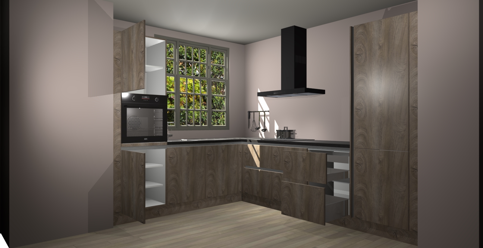 Met een modern, tijdloos design en ruime opslagruimte, zult u zich in no-time thuis voelen in uw nieuwe keuken. Uw leven wordt eenvoudiger met de soft-close deuren die voor het ultieme stille comfort zorgen - geen geluid dat u stoort terwijl u kookt. Ook is de keuken voorzien van 5 ingebouwde apparaten: een oven, inductie kookplaat, afzuigkap, vaatwasser en koelkast. Deze kunnen gemakkelijk na bestelling worden bijgewerkt naar AEG - waardoor uw luxe ervaring compleet is.