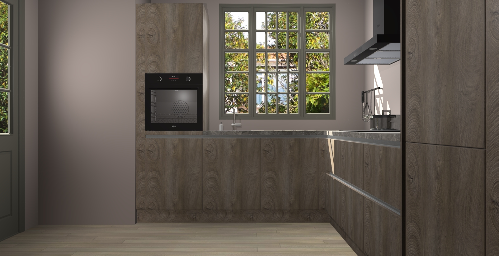 Met een modern, tijdloos design en ruime opslagruimte, zult u zich in no-time thuis voelen in uw nieuwe keuken. Uw leven wordt eenvoudiger met de soft-close deuren die voor het ultieme stille comfort zorgen - geen geluid dat u stoort terwijl u kookt. Ook is de keuken voorzien van 5 ingebouwde apparaten: een oven, inductie kookplaat, afzuigkap, vaatwasser en koelkast. Deze kunnen gemakkelijk na bestelling worden bijgewerkt naar AEG - waardoor uw luxe ervaring compleet is.