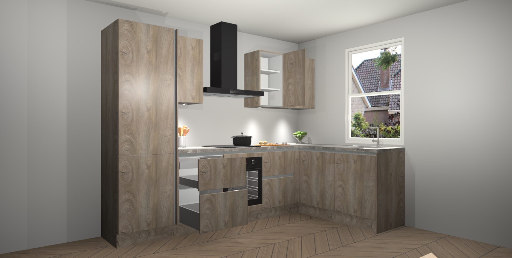 Inclusief plinten, stelpoten en werkblad