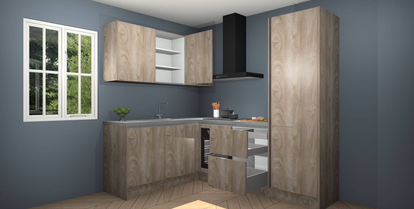 Maak kennis met de Cantaro Eiken greeploze keuken Boekarest, een moderne hoekkeuken waar al uw vrienden en familie jaloers op zullen zijn! Het verbluffende mooie ontwerp past in elk interieur en is een ideale keuze voor wie op zoek is naar een klassieke, maar verfijnde look.