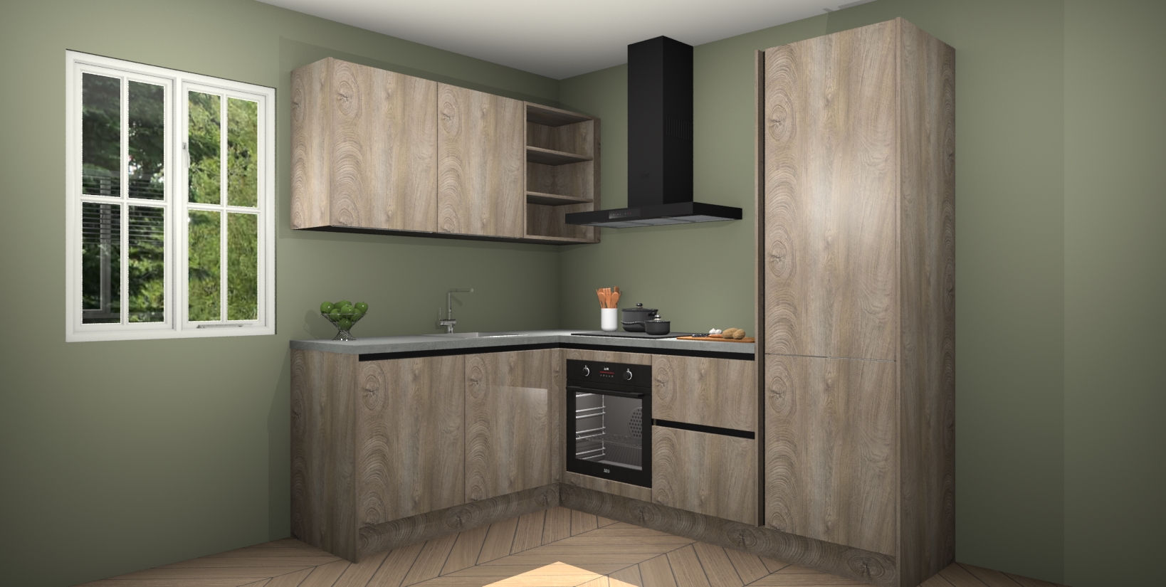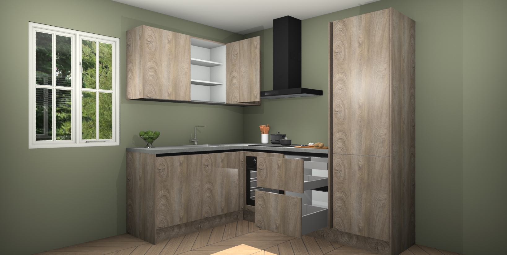 Maak kennis met de Cantaro Eiken greeploze keuken Boekarest, een moderne hoekkeuken waar al uw vrienden en familie jaloers op zullen zijn! Het verbluffende mooie ontwerp past in elk interieur en is een ideale keuze voor wie op zoek is naar een klassieke, maar verfijnde look.