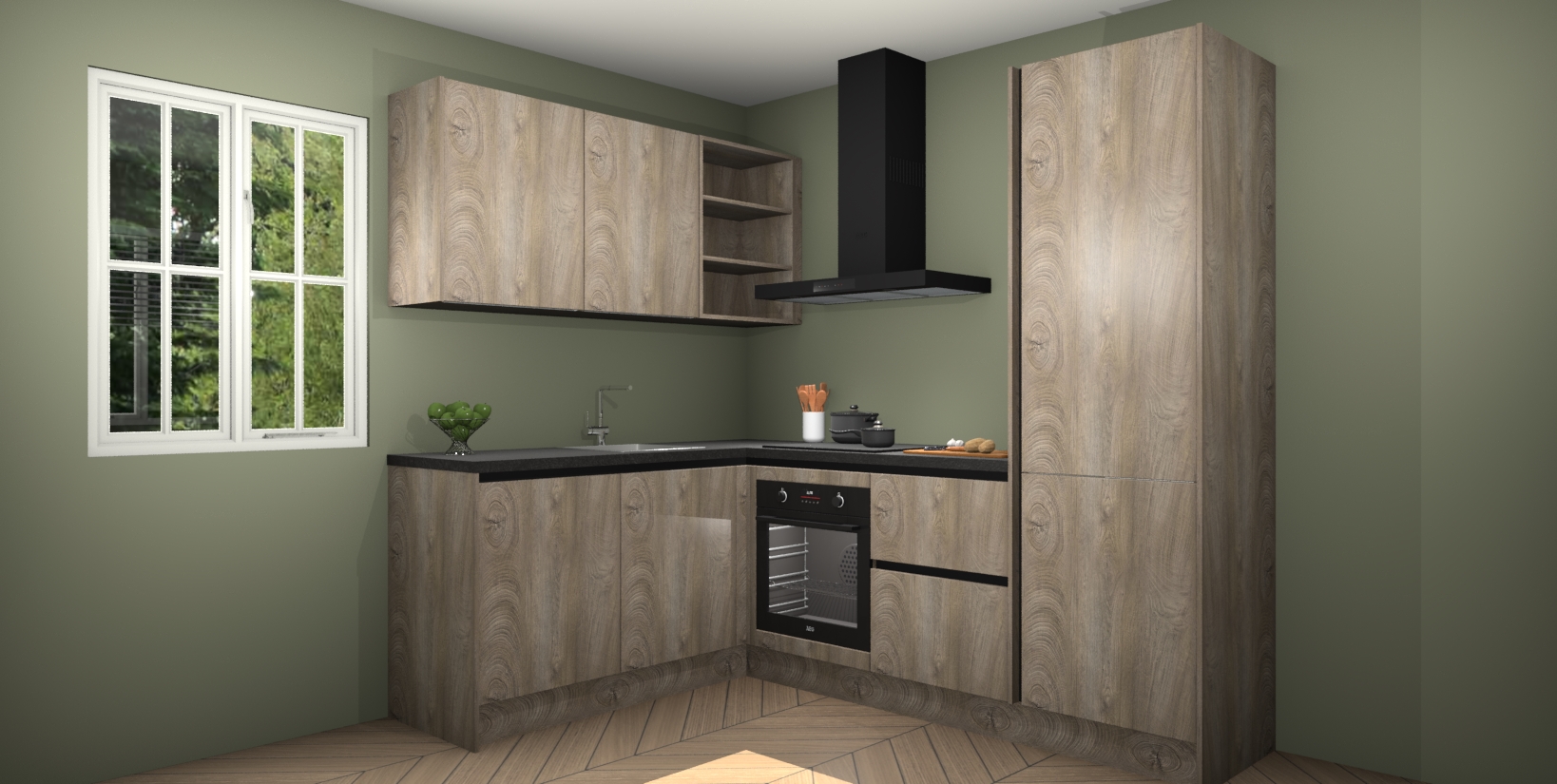 Maak kennis met de Cantaro Eiken greeploze keuken Boekarest, een moderne hoekkeuken waar al uw vrienden en familie jaloers op zullen zijn! Het verbluffende mooie ontwerp past in elk interieur en is een ideale keuze voor wie op zoek is naar een klassieke, maar verfijnde look.