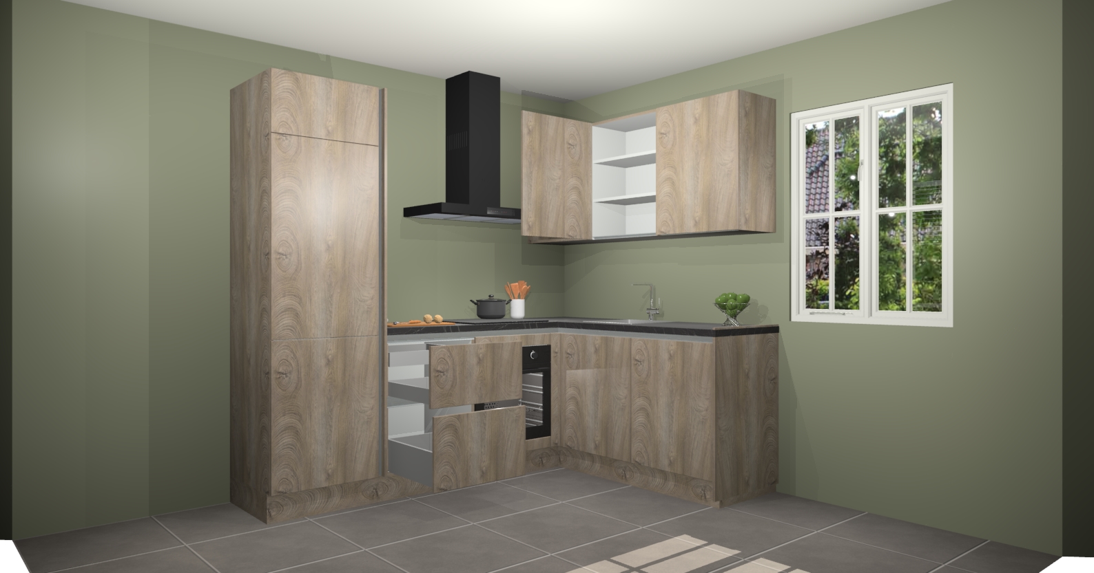 Onze keuken wordt voor geassembleerd geleverd in slechts 7 weken, waardoor u snel en eenvoudig met het installeren kan beginnen. Onze keuken omvat 5 inbouwapparaten: een oven, inductieplaat, afzuigkap, vaatwasser en koelkast. Deze zijn gemakkelijk na bestelling te upgraden. Onze keukens worden gemaakt in overeenstemming met de Duitse kwaliteitseisen, waardoor u verzekerd bent van een hoog kwaliteit product.