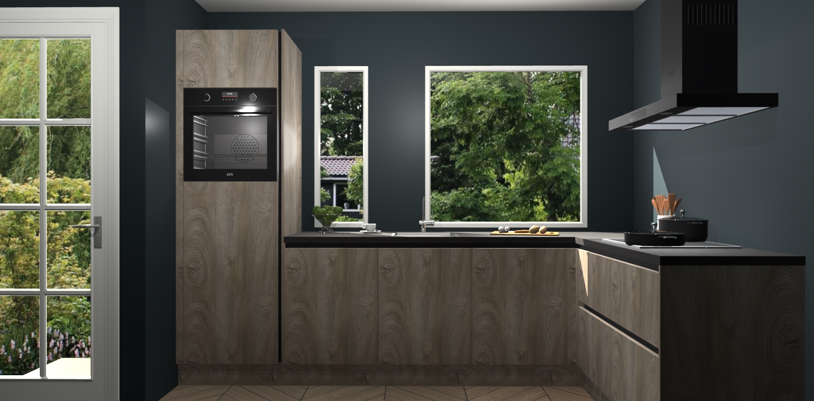 Deze complete keuken wordt geleverd met 5 inbouwapparaten: een oven, inductiekookplaat, afzuigkap, vaatwasser en koelkast. De toestellen kunnen na bestelling ook gemakkelijk worden opgewaardeerd naar AEG. Bovendien is elke deur in deze keuken voorzien van handige softclose technologie voor eenvoudig gebruik! Als een leuke toevoeging zit in deze keuken ook een carrousel, zo hoef je niet meer de hoek in duiken om iets te pakken.