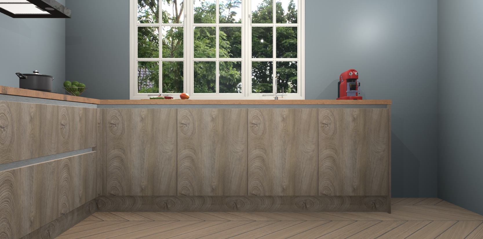 Inclusief plinten, stelpoten en werkblad