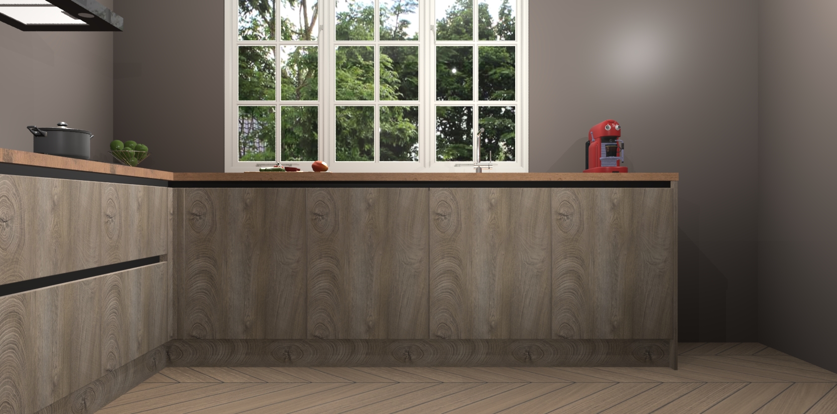 Inclusief plinten, stelpoten en werkblad