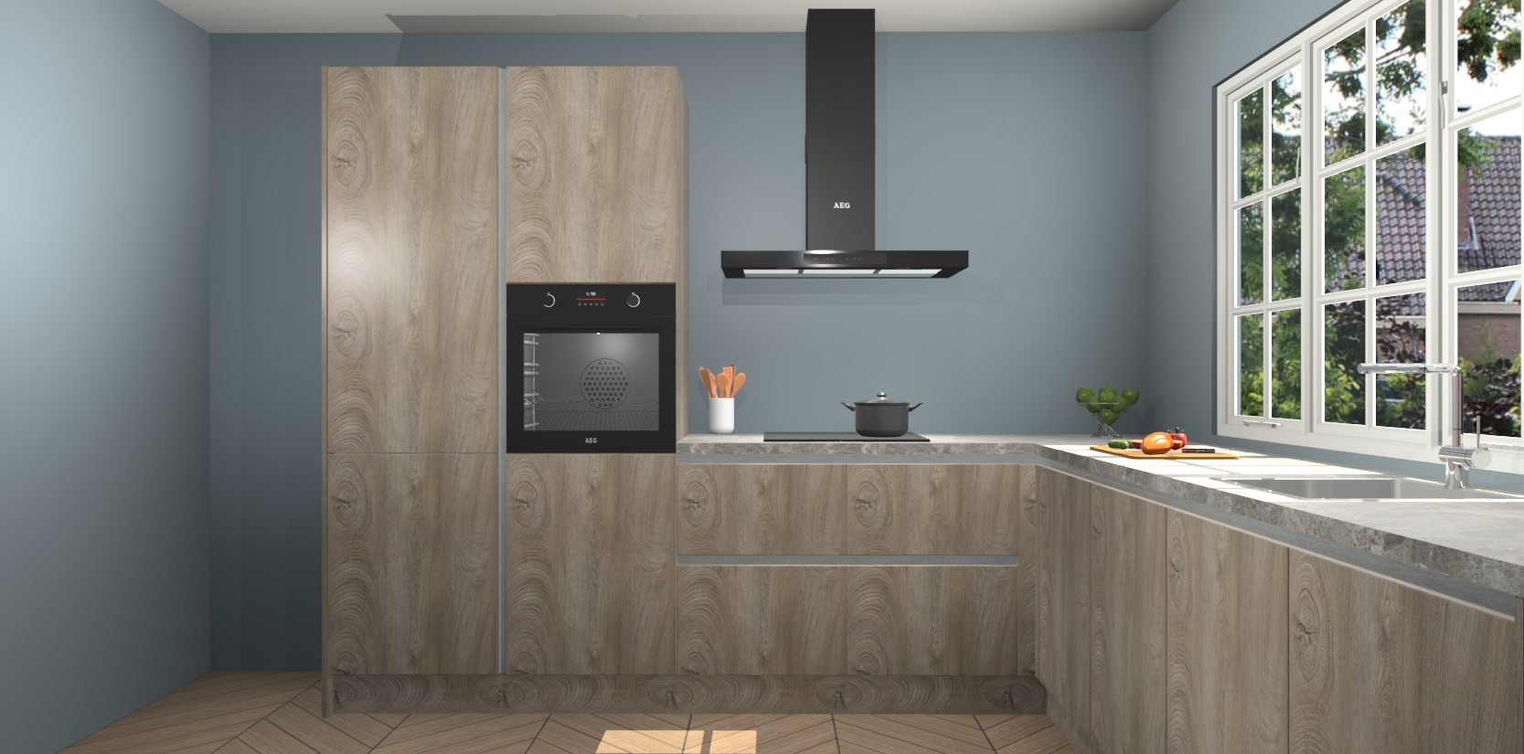 De keuken heeft veel opbergruimte, waardoor u alle ingrediënten gemakkelijk bereikbaar hebt staan. En daarnaast bevat deze volledig uitgeruste keuken ook 5 ingebouwde apparaten: een oven, inductiekookplaat, afzuigkap, vaatwasser en koelkast. Deze zijn heel eenvoudig na bestellen te upgraden naar AEG als u dit wilt. Bovendien zijn de softclose-kastdeuren ideaal; geef ze gewoon even een tikje en ze sluiten automatisch met geruisloze precisie.