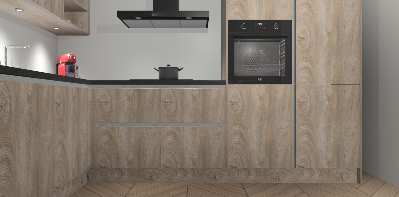 Inclusief plinten, stelpoten en werkblad