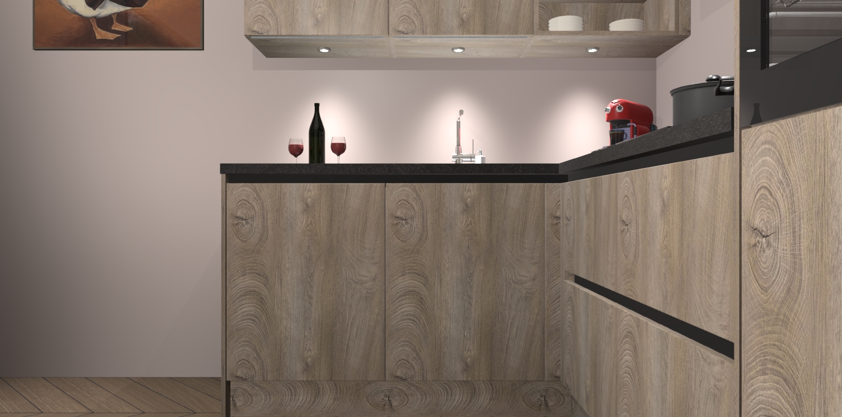 De Cantaro Eiken greeploze keuken Cognac gaat alleen maar om de beste keukenervaring. Kies gewoon de beste apparatuur en ongeëvenaarde Duitse constructie die u thuis wilt hebben en verander uw huiskamer hartelijkheid meteen in professionaliteit. Laat de toon weten dat u gemakkelijk kan genieten van alle luxe die u verdiend? Bestel nu de Cantaro Eiken greeploze keuken Cognac voor bij u thuis!
