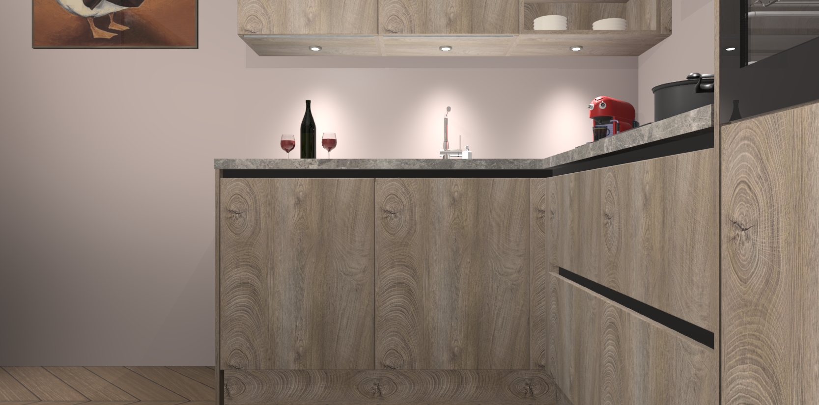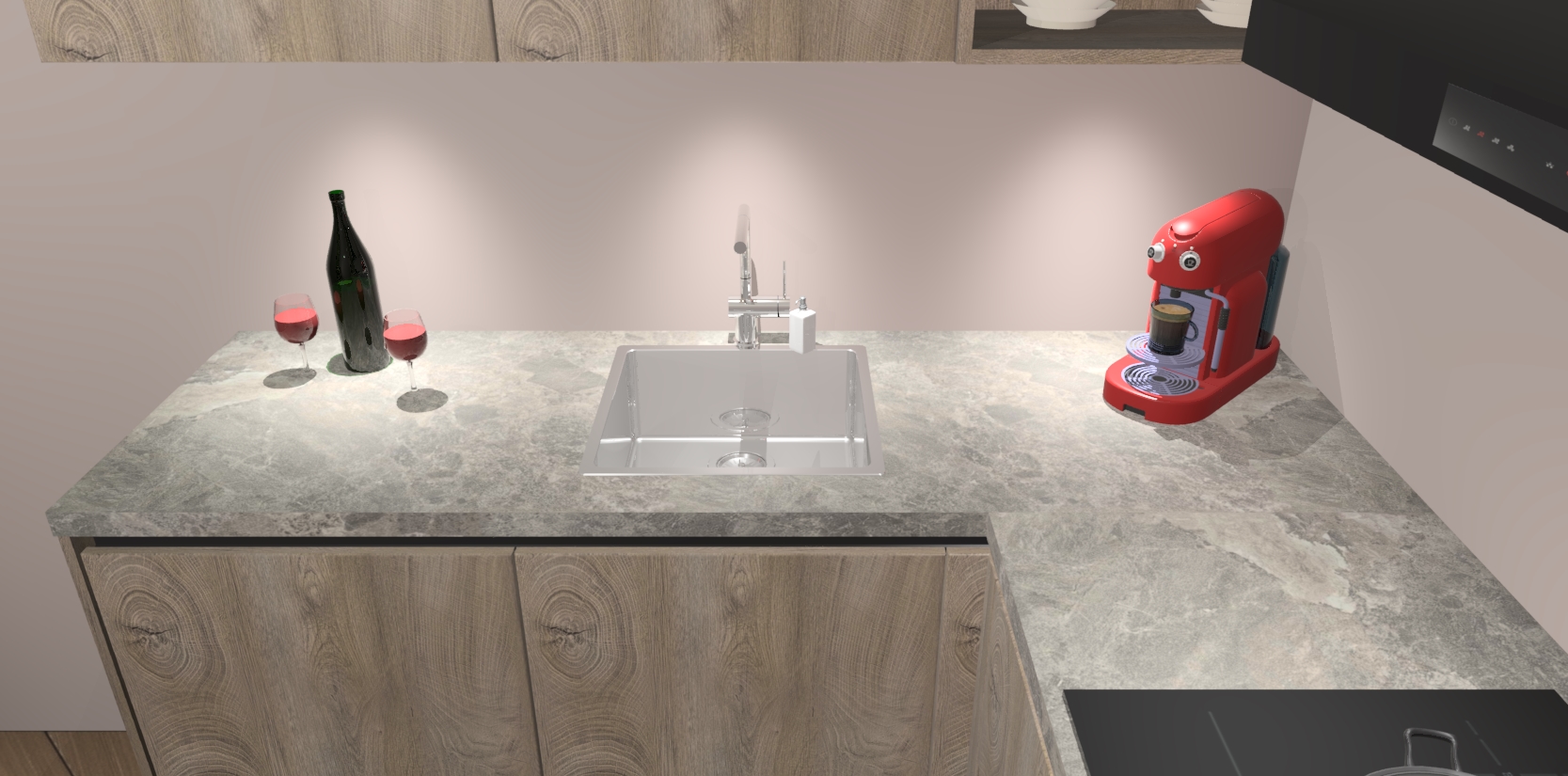 - Bij een hoekwerkblad zijn de hoeken in gevreesd en op maat gemaakt