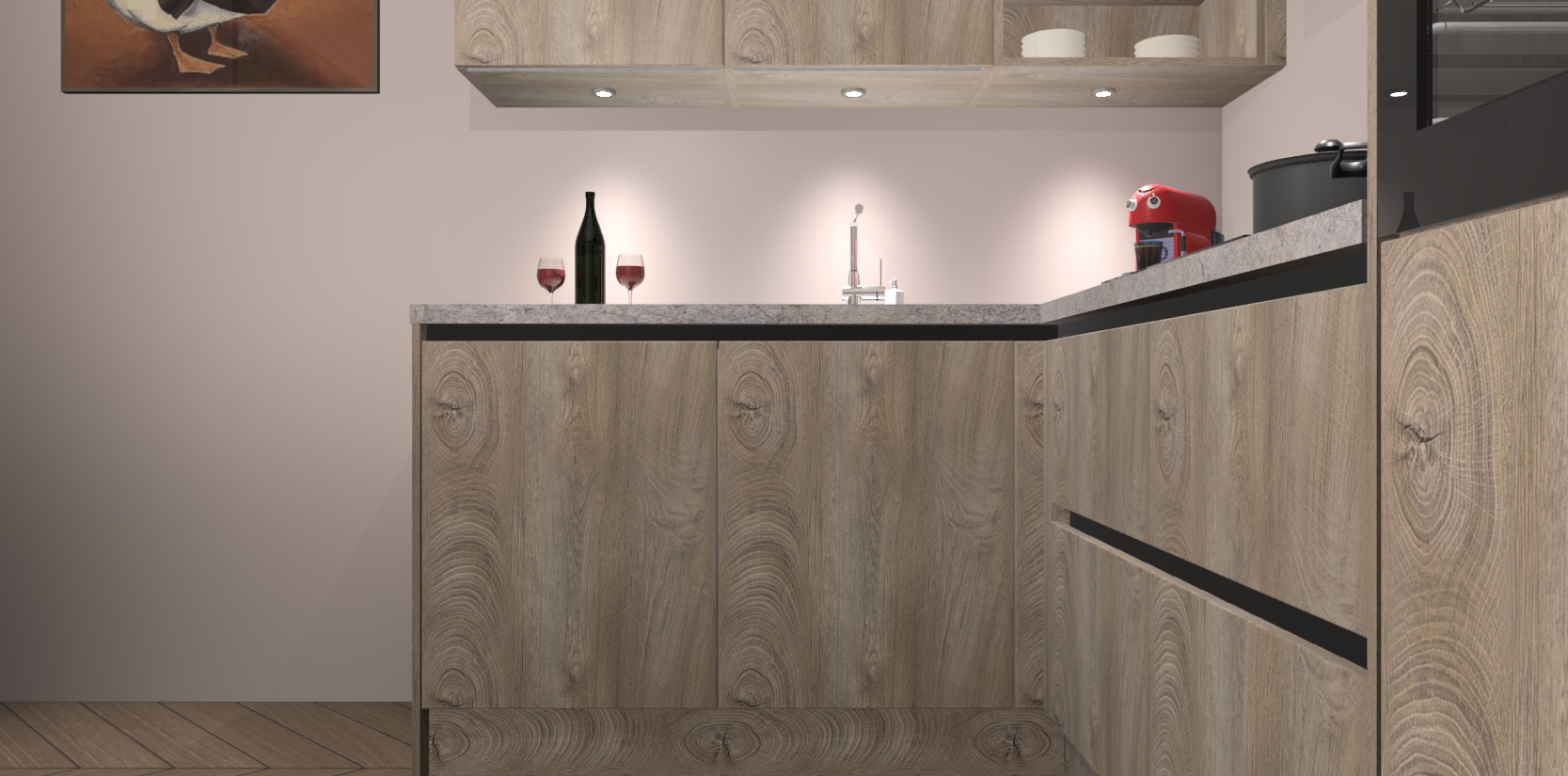 De Cantaro Eiken greeploze keuken Cognac gaat alleen maar om de beste keukenervaring. Kies gewoon de beste apparatuur en ongeëvenaarde Duitse constructie die u thuis wilt hebben en verander uw huiskamer hartelijkheid meteen in professionaliteit. Laat de toon weten dat u gemakkelijk kan genieten van alle luxe die u verdiend? Bestel nu de Cantaro Eiken greeploze keuken Cognac voor bij u thuis!