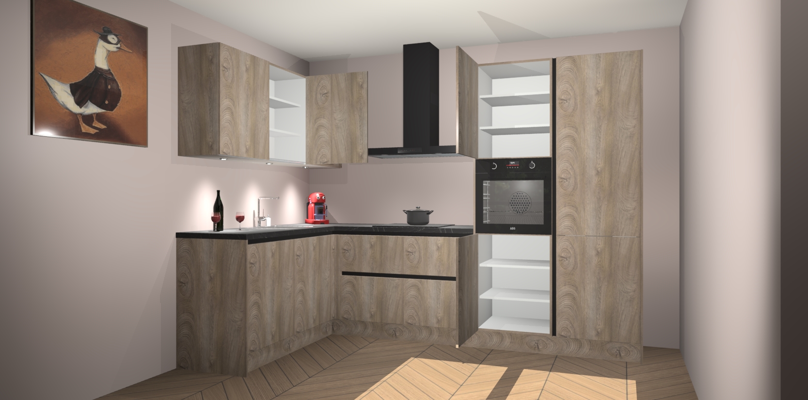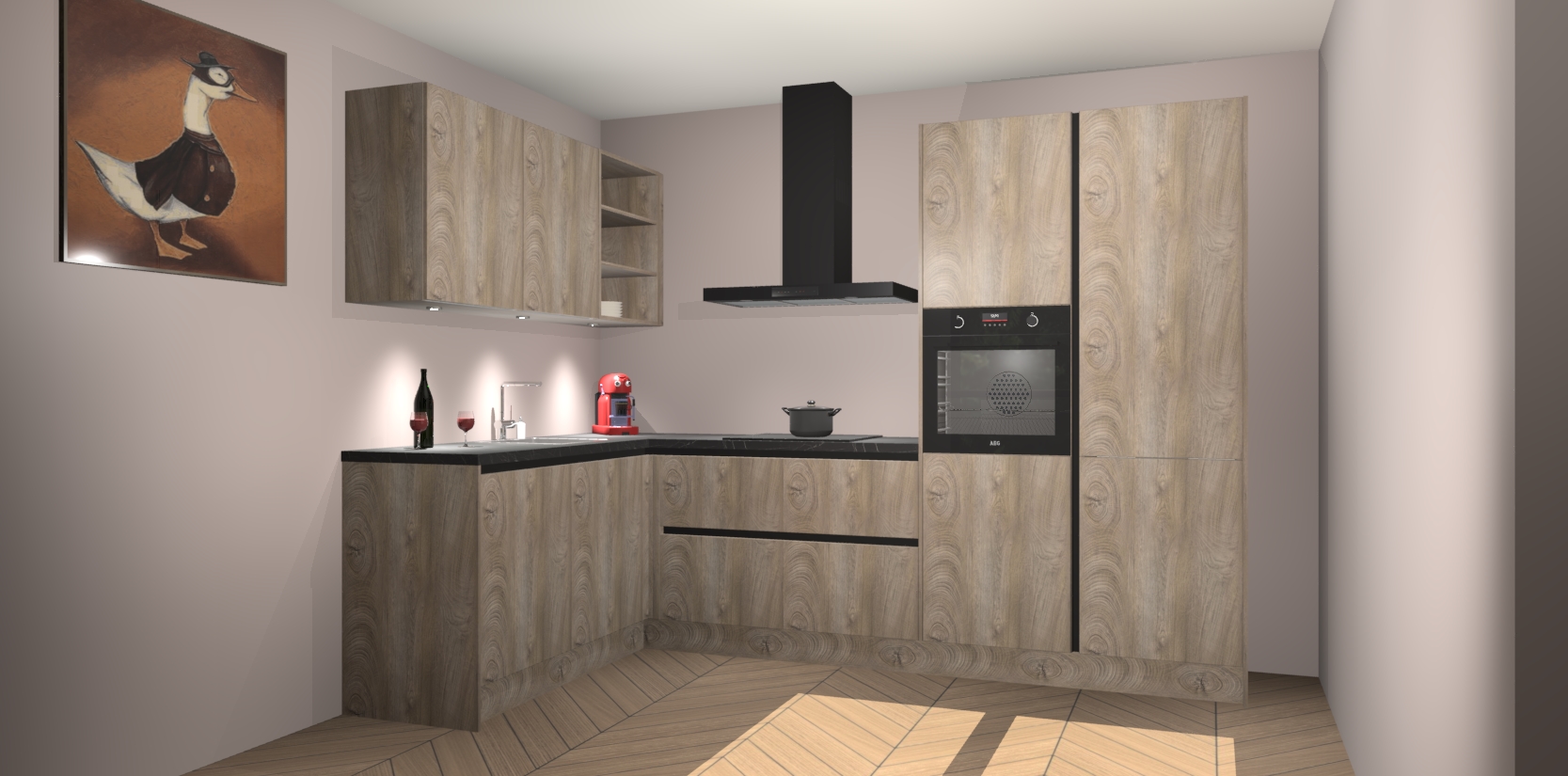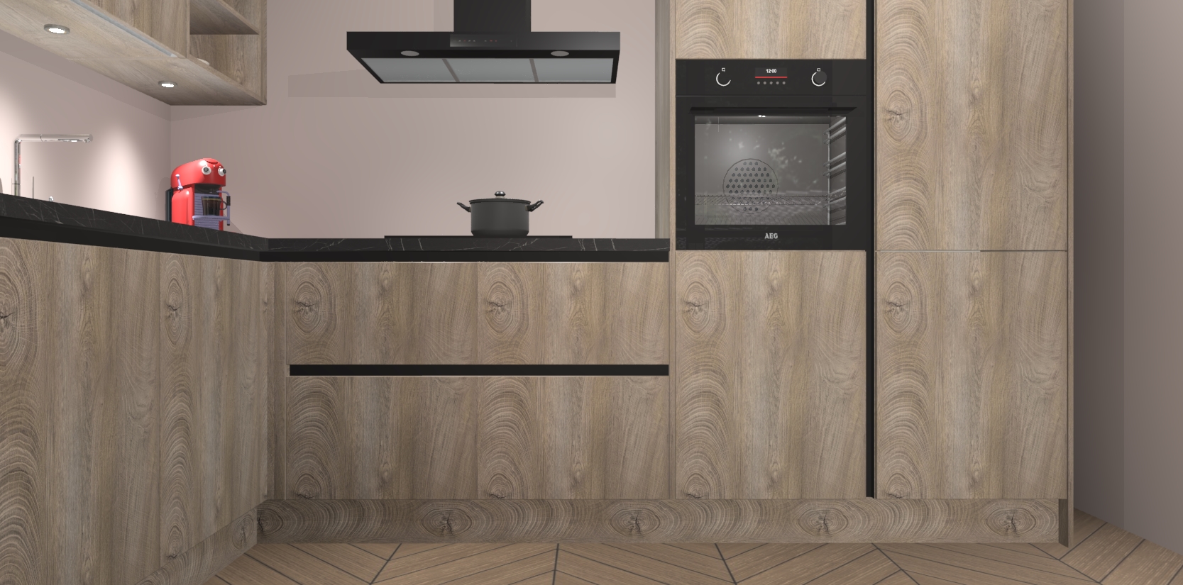 De Cantaro Eiken greeploze keuken Cognac is een adembenemend ontwerp met een modern en tijdloos uiterlijk. Deze luxe keuken straalt echt aristocratisch uit, waardoor uw koken plezieriger zal worden! Het prachtige design begint bij de hoekkeuken, wat perfect past bij elk type interieur. Bovendien bevat deze hoogwaardige set vijf inbouwapparaten - van oven tot koelkast - die via bestelling naar AEG geüpgraded kunnen worden!