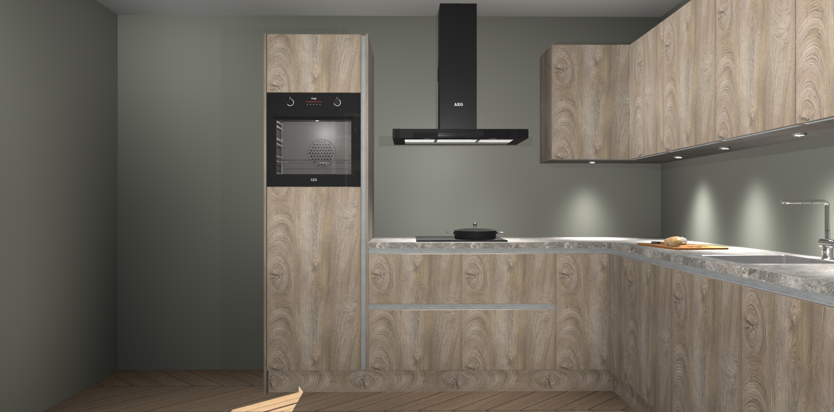 De Cantaro Eiken greeploze keuken Debar is uitgerust met vijf inbouwapparaten die elke kooktaak handig en efficiënt maken. Een oven, inductiekookplaat, afzuigkap, vaatwasser en koelkast zijn standaard, maar kunnen na bestelling eenvoudig worden geupgrade naar AEG. Profiteer vervolgens van de softclose deuren voor snelle toegang en geruisloze toegang.