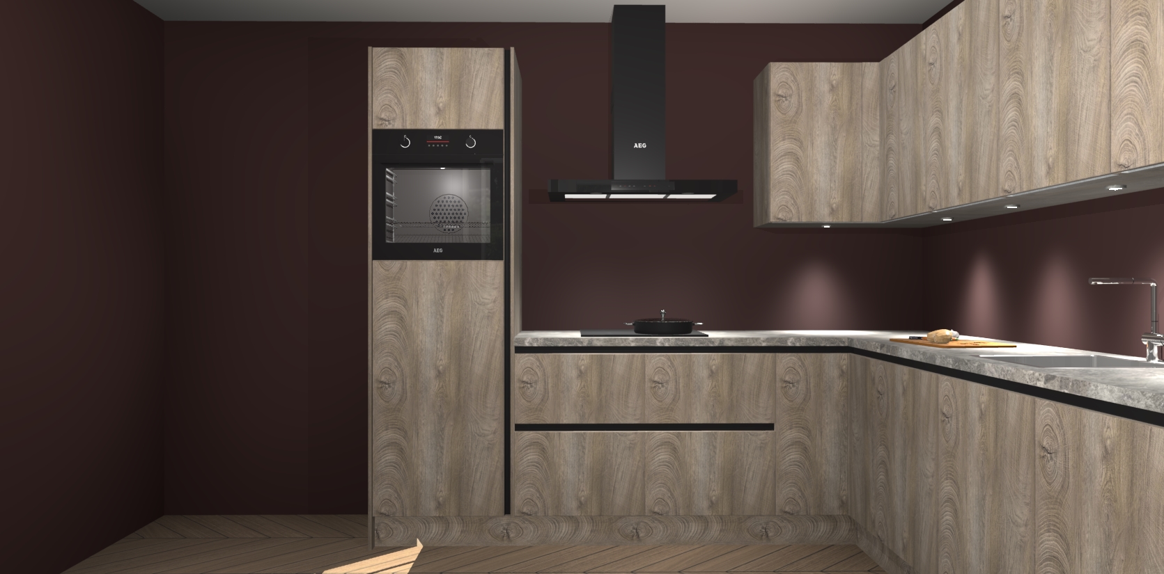 De Cantaro Eiken greeploze keuken Debar is uitgerust met vijf inbouwapparaten die elke kooktaak handig en efficiënt maken. Een oven, inductiekookplaat, afzuigkap, vaatwasser en koelkast zijn standaard, maar kunnen na bestelling eenvoudig worden geupgrade naar AEG. Profiteer vervolgens van de softclose deuren voor snelle toegang en geruisloze toegang.