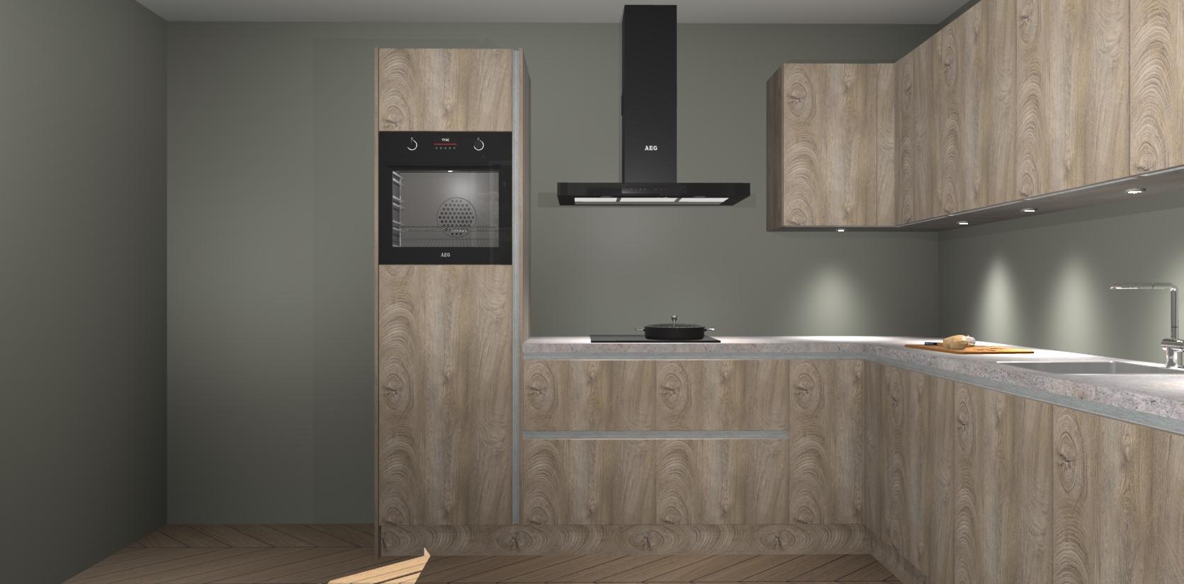 De Cantaro Eiken greeploze keuken Debar is uitgerust met vijf inbouwapparaten die elke kooktaak handig en efficiënt maken. Een oven, inductiekookplaat, afzuigkap, vaatwasser en koelkast zijn standaard, maar kunnen na bestelling eenvoudig worden geupgrade naar AEG. Profiteer vervolgens van de softclose deuren voor snelle toegang en geruisloze toegang.