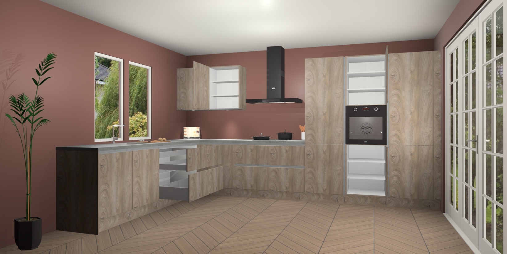 Heeft u nog apparatuur nodig? Geen probleem: de Cantaro Eiken greeploze keuken Debrecen bevat vijf ingebouwde apparaten - een oven, inductiekookplaat, afzuigkap, vaatwasser en koelkast - die gemakkelijk kunnen worden bijgewerkt naar AEG na bestelling. En als dat nog niet genoeg is; onze kasten worden pre-geassembleerd geleverd en zijn verkrijgbaar tegen een vastgeroeste lage prijs! U hoeft nooit meer te zoeken naar goede kwaliteit en service want onze producten hebben echt Duitse kwaliteit.