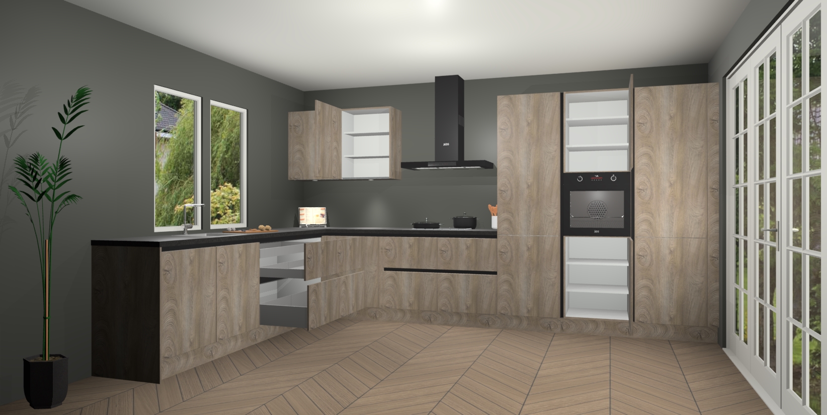 Kom dichtbij de perfecte keuken van uw dromen met de Cantaro Eiken greeploze keuken Debrecen. Met een prachtige houtlook en eigentijds ontwerp, straalt deze keuken warmte en sfeer uit. Of u nu liefhebber bent van traditionele of moderne stijlen, er is genoeg ruimte om aan al uw behoeften te voldoen.