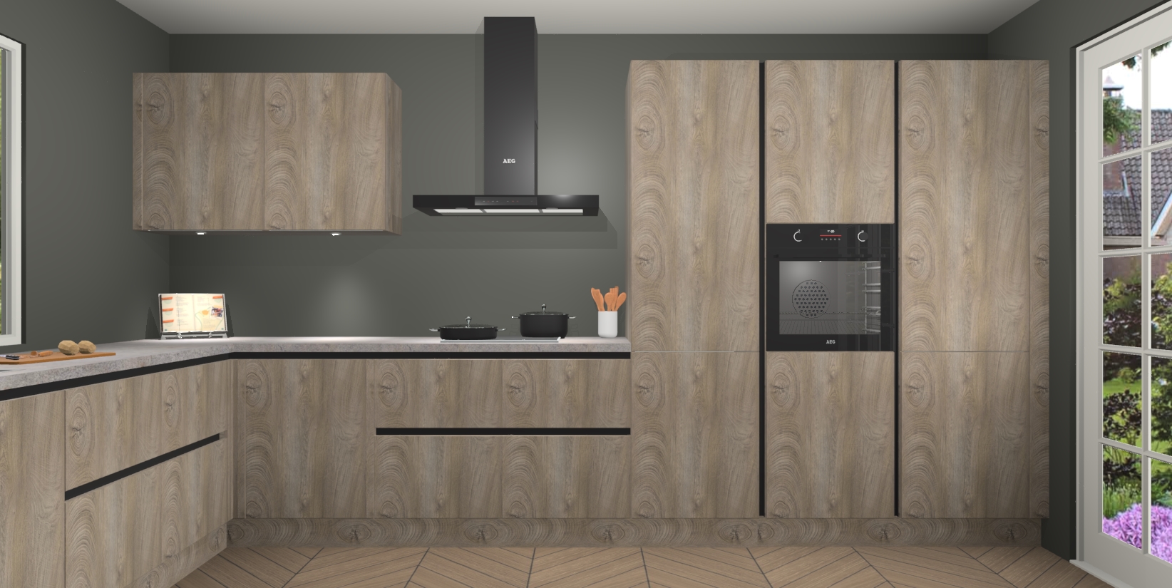 Heeft u nog apparatuur nodig? Geen probleem: de Cantaro Eiken greeploze keuken Debrecen bevat vijf ingebouwde apparaten - een oven, inductiekookplaat, afzuigkap, vaatwasser en koelkast - die gemakkelijk kunnen worden bijgewerkt naar AEG na bestelling. En als dat nog niet genoeg is; onze kasten worden pre-geassembleerd geleverd en zijn verkrijgbaar tegen een vastgeroeste lage prijs! U hoeft nooit meer te zoeken naar goede kwaliteit en service want onze producten hebben echt Duitse kwaliteit.