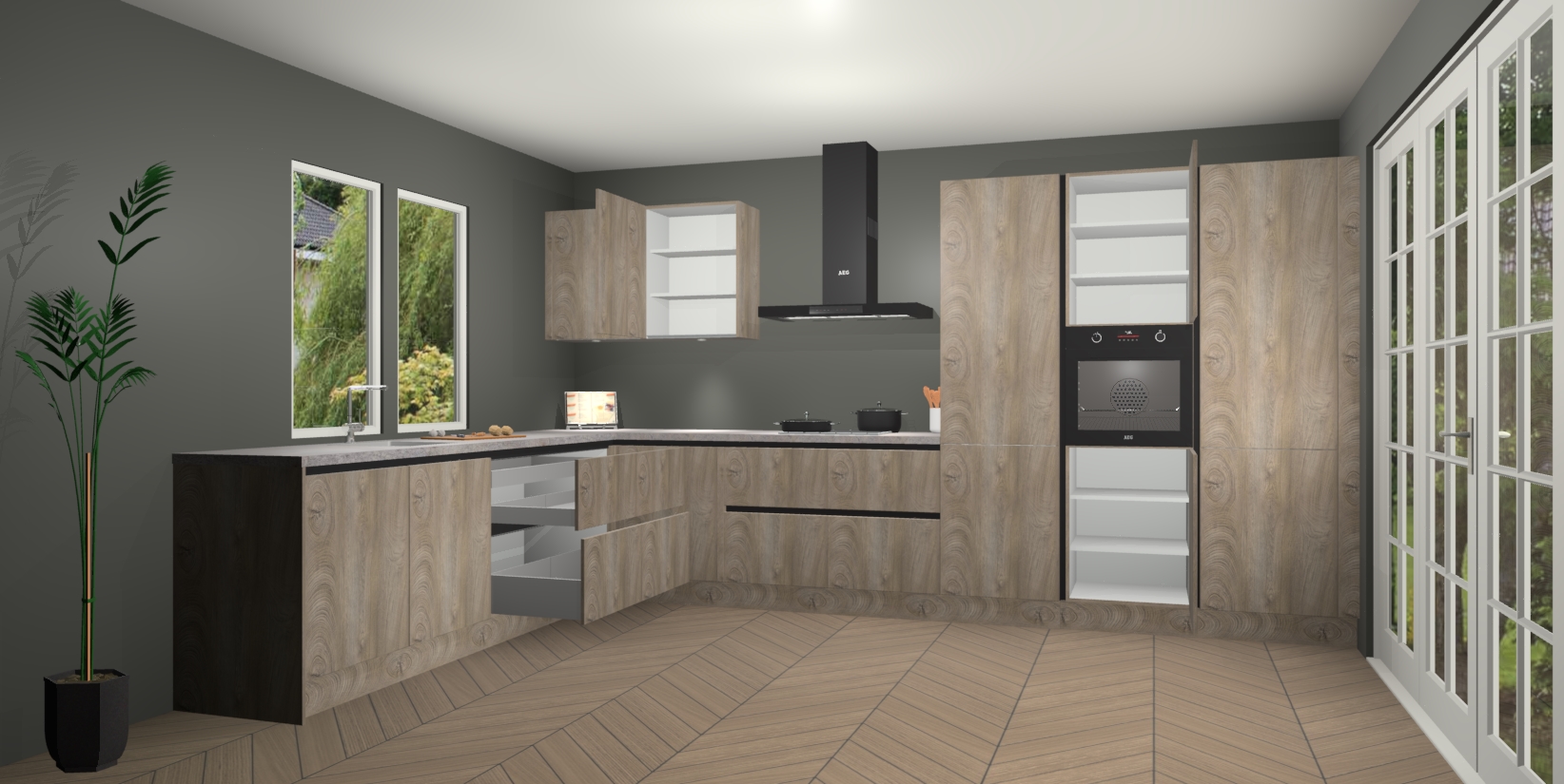 Kom dichtbij de perfecte keuken van uw dromen met de Cantaro Eiken greeploze keuken Debrecen. Met een prachtige houtlook en eigentijds ontwerp, straalt deze keuken warmte en sfeer uit. Of u nu liefhebber bent van traditionele of moderne stijlen, er is genoeg ruimte om aan al uw behoeften te voldoen.
