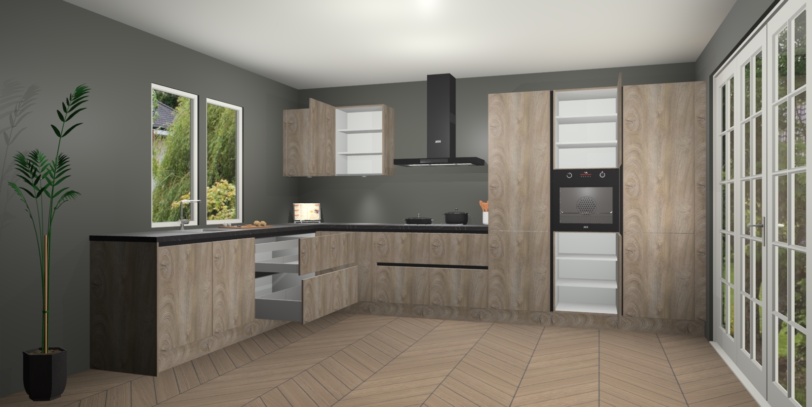 Kom dichtbij de perfecte keuken van uw dromen met de Cantaro Eiken greeploze keuken Debrecen. Met een prachtige houtlook en eigentijds ontwerp, straalt deze keuken warmte en sfeer uit. Of u nu liefhebber bent van traditionele of moderne stijlen, er is genoeg ruimte om aan al uw behoeften te voldoen.