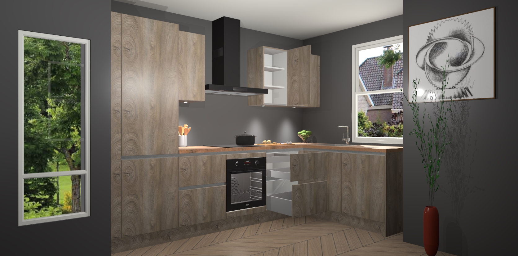De Cantaro Eiken greeploze keuken Geneve is precies wat u nodig heeft als u op zoek bent naar modern design, versmolten met tijdloze schoonheid. De strakke afwerking voegt klasse toe terwijl het toch een uitnodigende sfeer behoudt; zeker om zowel gasten als uzelf te inspireren om in stijl te gaan koken! En nog beter, het zal uw budget niet breken - dus waarom wachten? Met de Cantaro Eiken greeploze keuken Geneve bent u verzekerd van kwaliteit zonder in te leveren op de prijs!