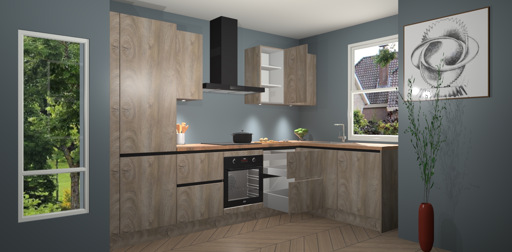 De Cantaro Eiken greeploze keuken Geneve is precies wat u nodig heeft als u op zoek bent naar modern design, versmolten met tijdloze schoonheid. De strakke afwerking voegt klasse toe terwijl het toch een uitnodigende sfeer behoudt; zeker om zowel gasten als uzelf te inspireren om in stijl te gaan koken! En nog beter, het zal uw budget niet breken - dus waarom wachten? Met de Cantaro Eiken greeploze keuken Geneve bent u verzekerd van kwaliteit zonder in te leveren op de prijs!