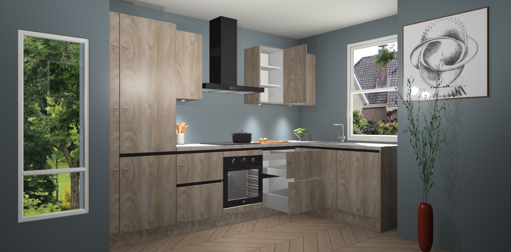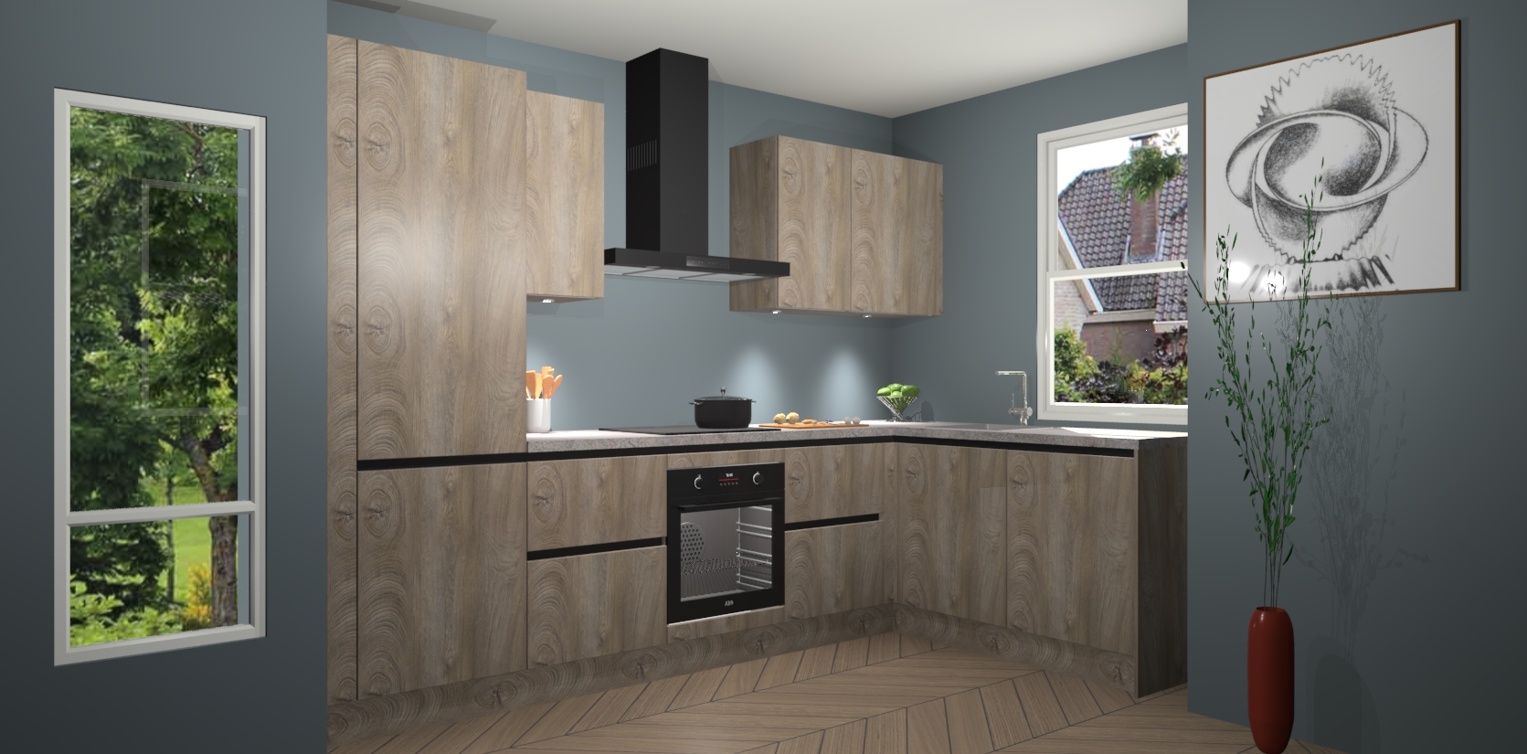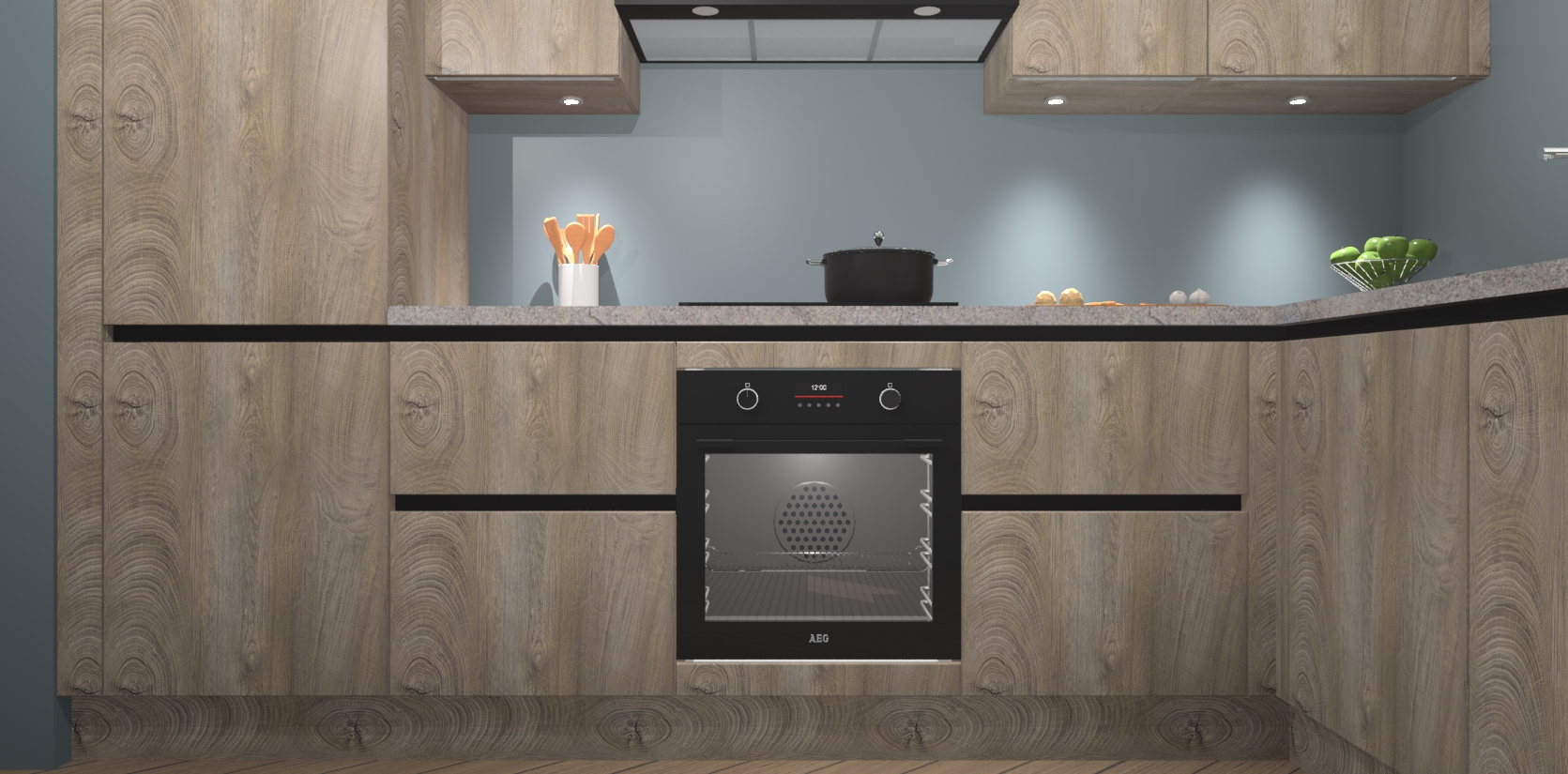 De Cantaro Eiken greeploze keuken Geneve is uitgerust met 5 inbouwapparaten - een oven, inductiekookplaat, afzuigkap, vaatwasser en koelkast - voor al uw kook- en bewaarbehoeftes. U kunt deze apparaten desgewenst eenvoudig upgraden naar AEG of de oven omruilen voor een combimagnetron na het plaatsen van uw bestelling. En met de soft close deuren, voldoende opbergruimte en kasten die voorgemonteerd worden geleverd, bent u in een mum van tijd klaar om heerlijke maaltijden te bereiden!