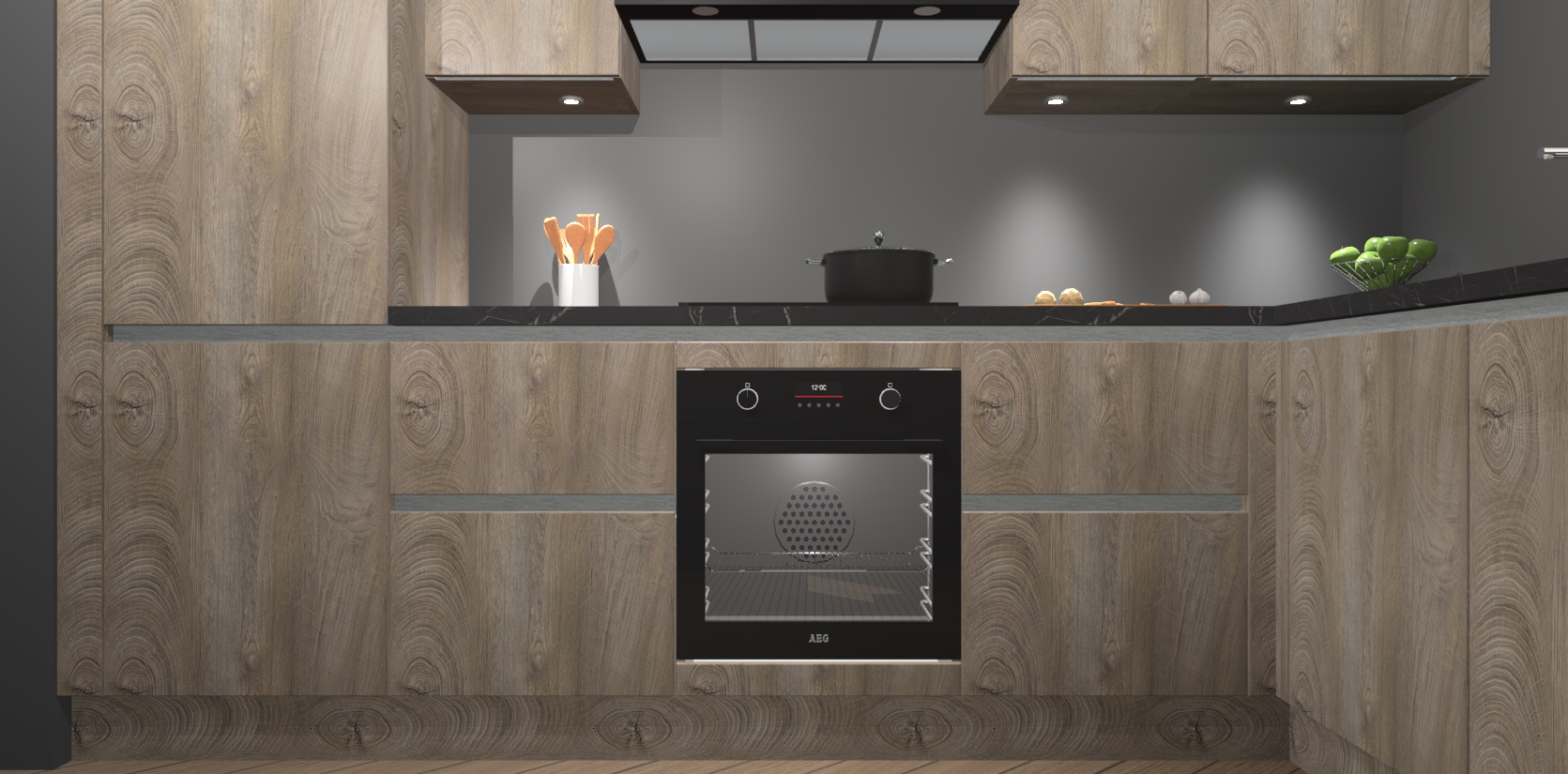De Cantaro Eiken greeploze keuken Geneve is uitgerust met 5 inbouwapparaten - een oven, inductiekookplaat, afzuigkap, vaatwasser en koelkast - voor al uw kook- en bewaarbehoeftes. U kunt deze apparaten desgewenst eenvoudig upgraden naar AEG of de oven omruilen voor een combimagnetron na het plaatsen van uw bestelling. En met de soft close deuren, voldoende opbergruimte en kasten die voorgemonteerd worden geleverd, bent u in een mum van tijd klaar om heerlijke maaltijden te bereiden!