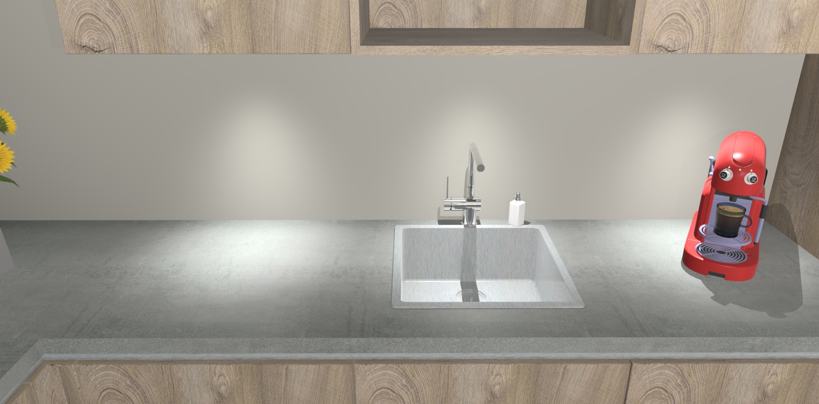 - De spoelbak is nog niet in gevreesd. Dit dient tijdens het werk gedaan te worden